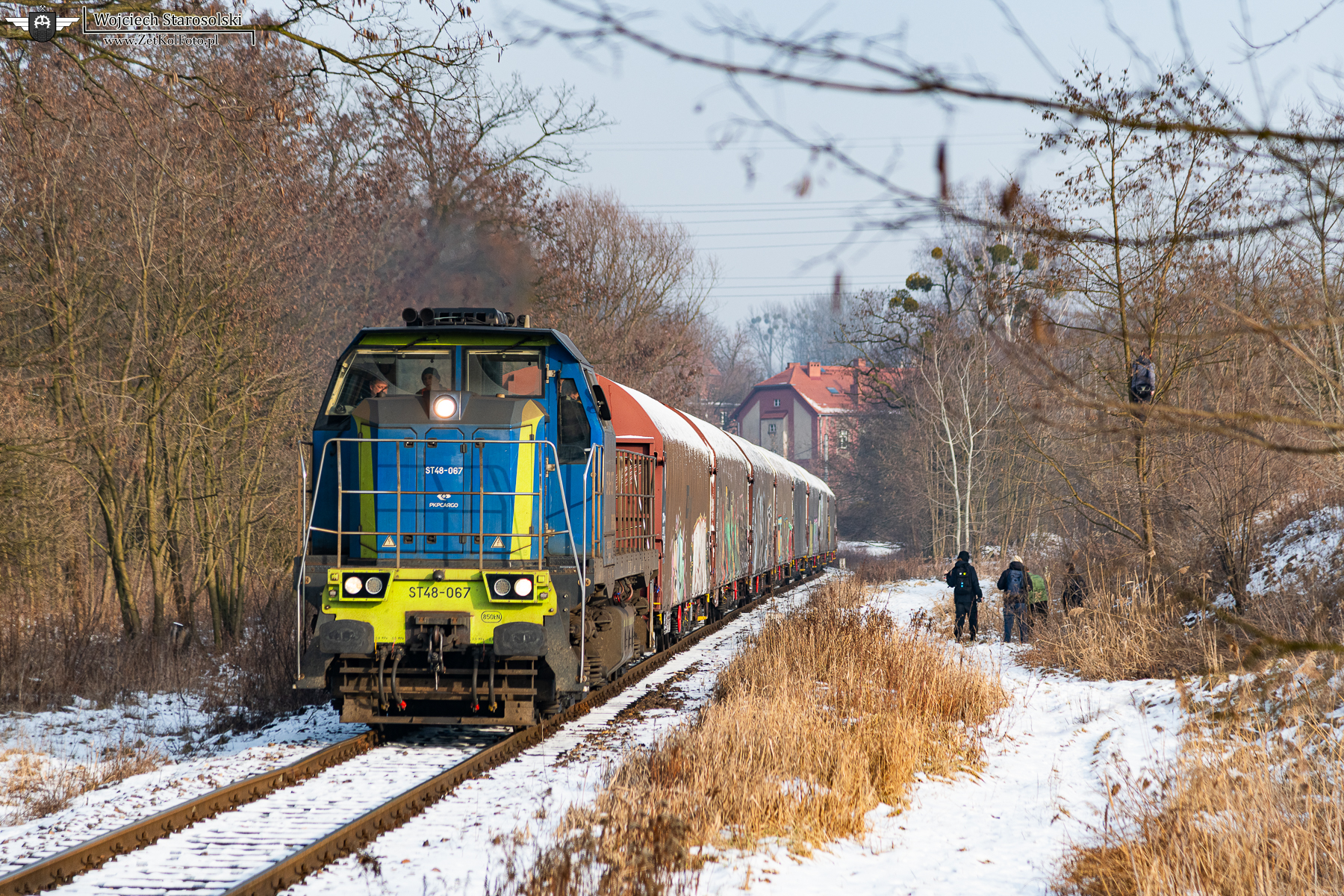 19.02.2026 | Ruda Śląska | Szlak Ruda Chebzie-Zabrze Biskupice | ST48-067 ze szmaciakami jedzie w kierunku Chebzia.