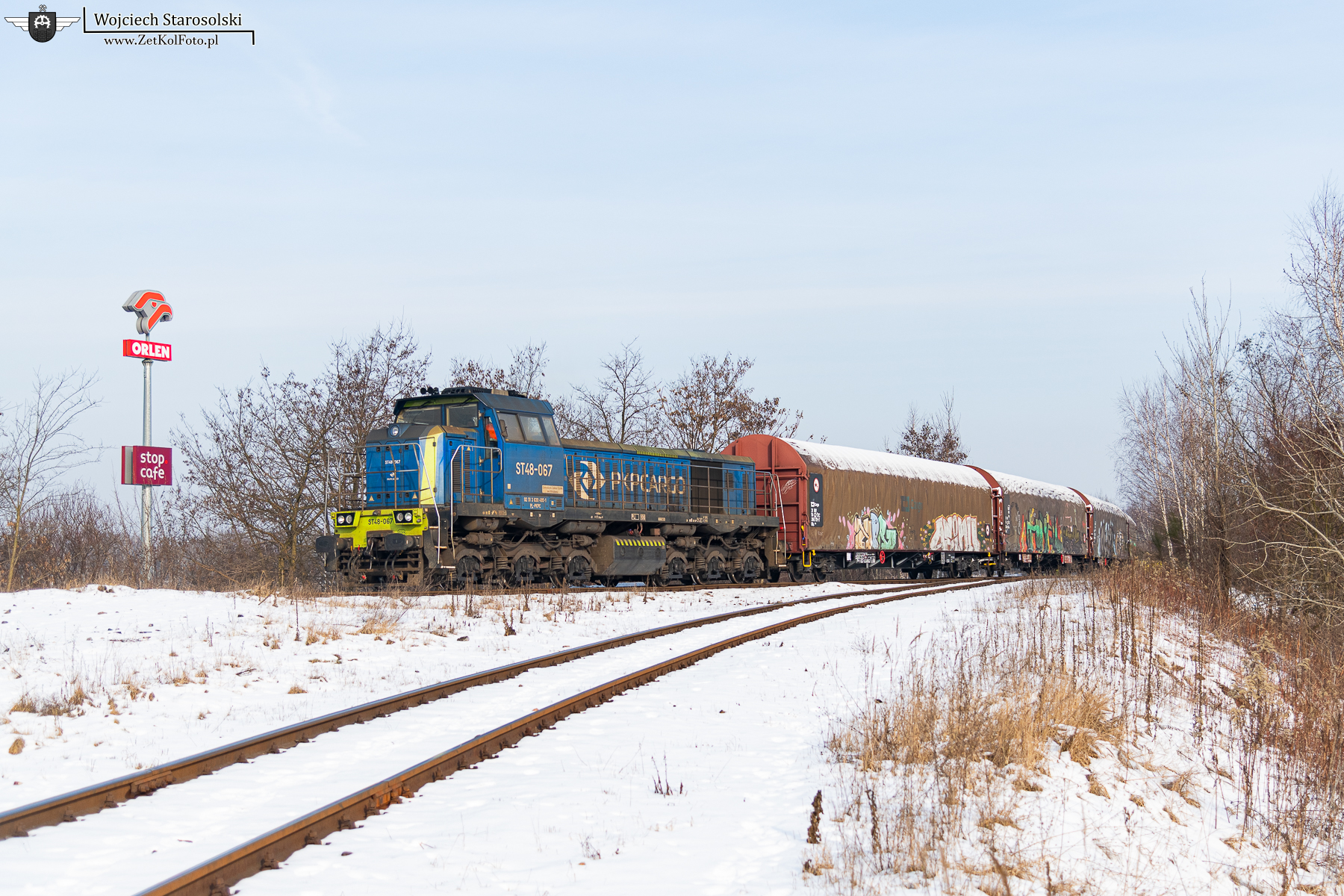 19.02.2026 | Ruda Śląska | Bocznica Huty Pokój | ST48-067 wciąga szmaciaki na HP od strony Chebzia.