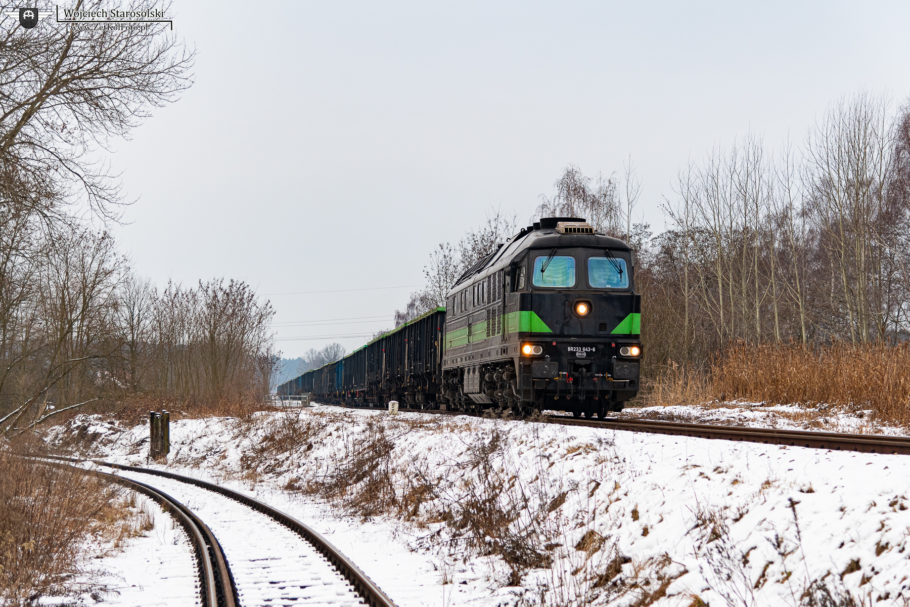 17.02.2026 | Dąbrowa Górnicza | Szlak podg.Dąbrowa Górnicza Piekło-Będzin Łagisza | BR233 643-6 z węglarkami pokonuje szlak podg.Dąbrowa Górnicza Piekło-Będzin Łagisza, jadąc w kierunku Piekła.