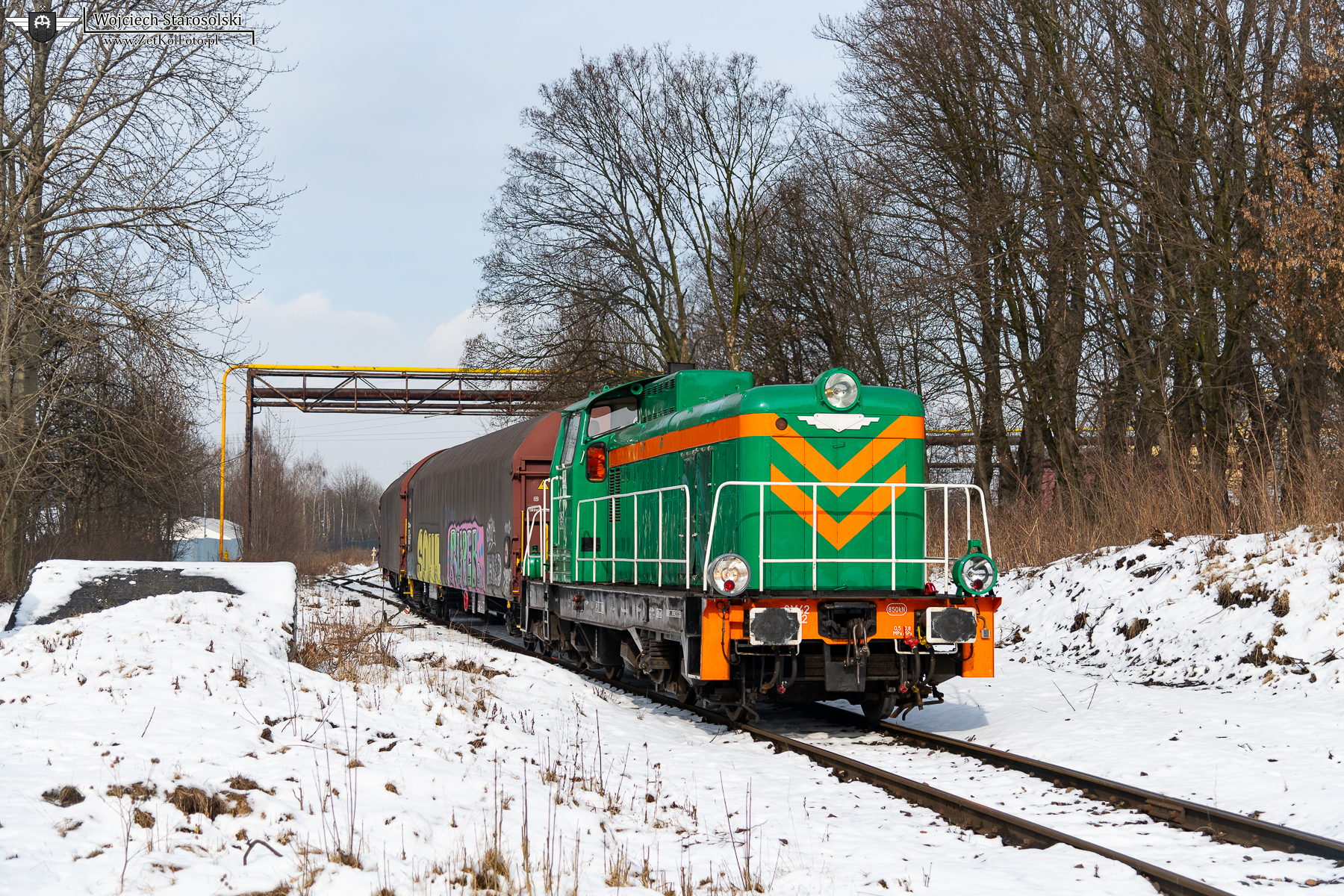 19.02.2026 | Ruda Śląska | Bocznica wydziału profili giętych huty Pokój, dawna stacja Ruda Wschodnia | SM42-2512 wyciąga szmaciaki z WPG do Huty.