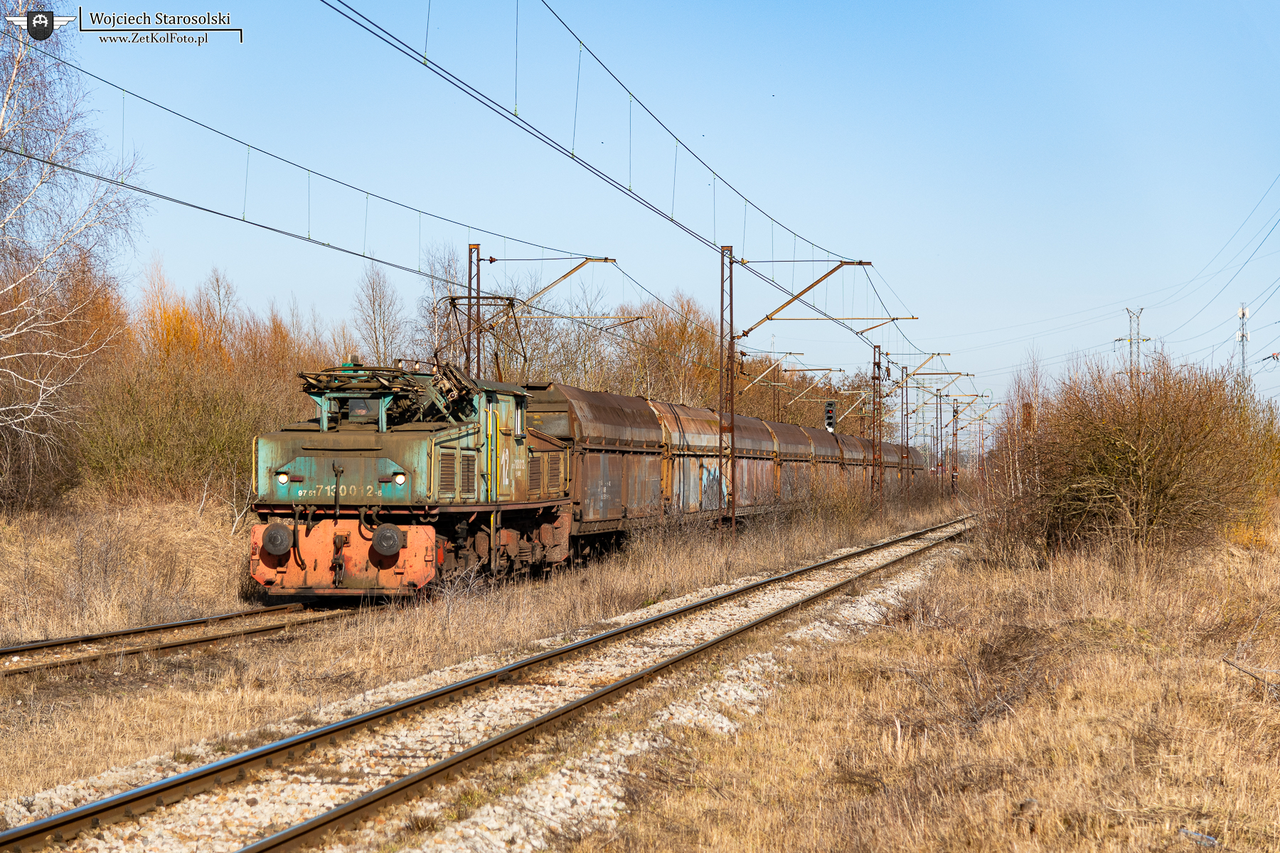 07.03.2026 | Kamienica | Szlak Cukrownia-Estakada Wschód | EL2-12 z ładownym składem wyjeżdża z Cukrowni w kierunku Estakady Wschód.