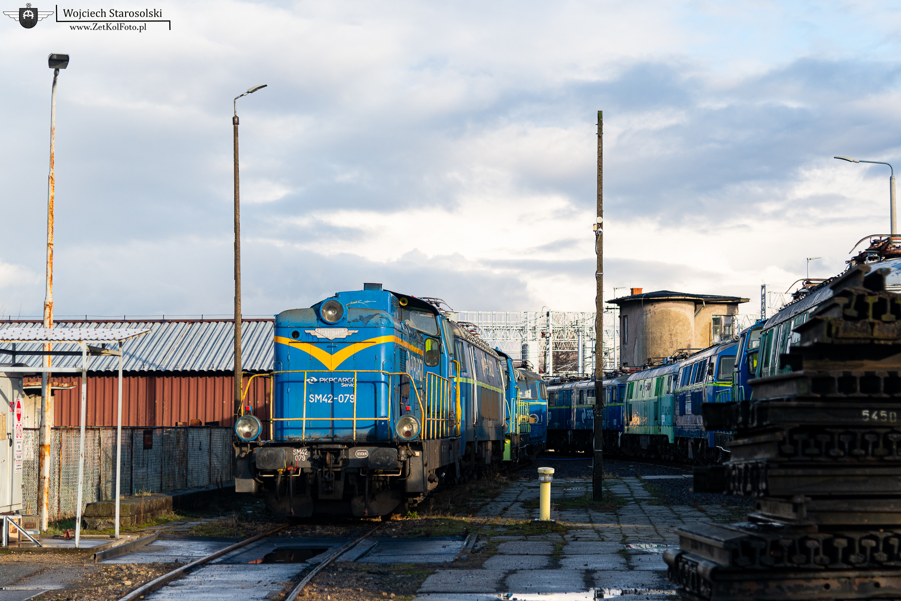 24.02.2026 | Czechowice-Dziedzice | Lokomotywownia PKP Cargo w Czechowicach-Dziedzicach | SM42-079 stoi z innymi lokami na w/w szopie.