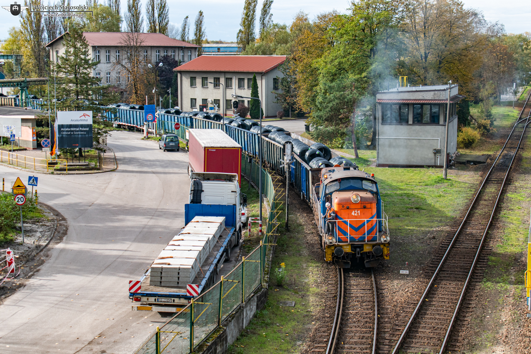 31.10.2023 | Sosnowiec | Bocznica Huty Cedler | SM42 S-421 z węglarkami manewruje na w/w bocznicy.