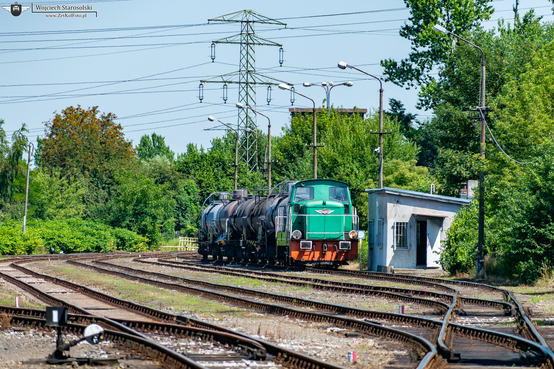 20.07.2022 | Chorzów | Bocznica chorzowskich zakładów azotowych | 401Da-074 manewruje na torach z/o chorzowskich zakładów azotowych. Chwilę potem maszyna wraz z widocznym w tle składem beczek wjechała w głąb zakładu.
