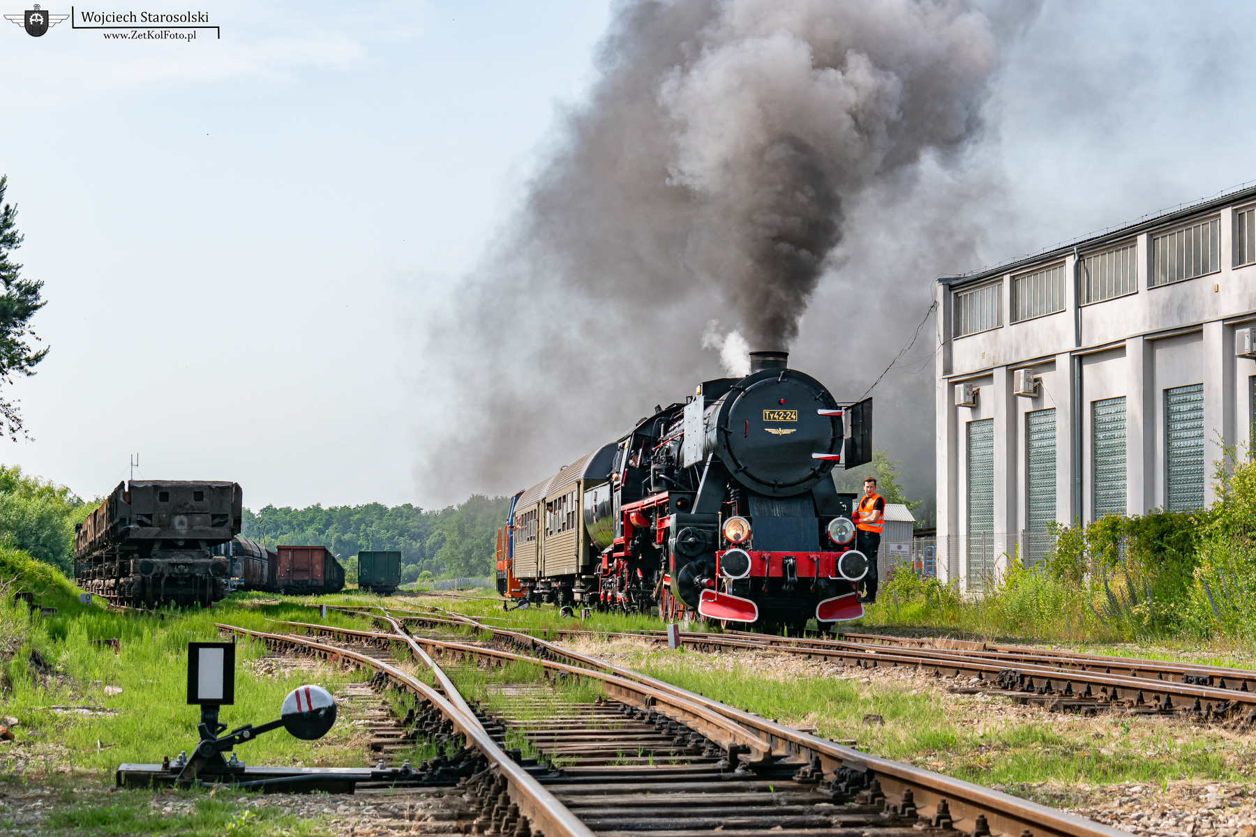 21.06.2023 | Pyskowice | Dawna stacja Pyskowice kolei piaskowych | Ty42-24 z pociągiem specjalnym zorganizowanym przez osoby prywatne oraz stowarzyszenie TOZKiOS Pyskowice, manewruje ze składem dwóch wagonów 94A oraz 401Da-499 w celu wyjazdu do Śląskiego Zaplecza Remontowego ulokowanego w Przezchlebiu. Skład znajduje się na smętnych resztkach dawnej stacji piaskowej Pyskowice, która wraz z okolicznymi szlakami od ok.sierpnia 2022 roku działa jako bocznica. Budynek po prawej to dawna lokomotywownia PMP-PW, w której obecnie pracuje ASCO Rail.