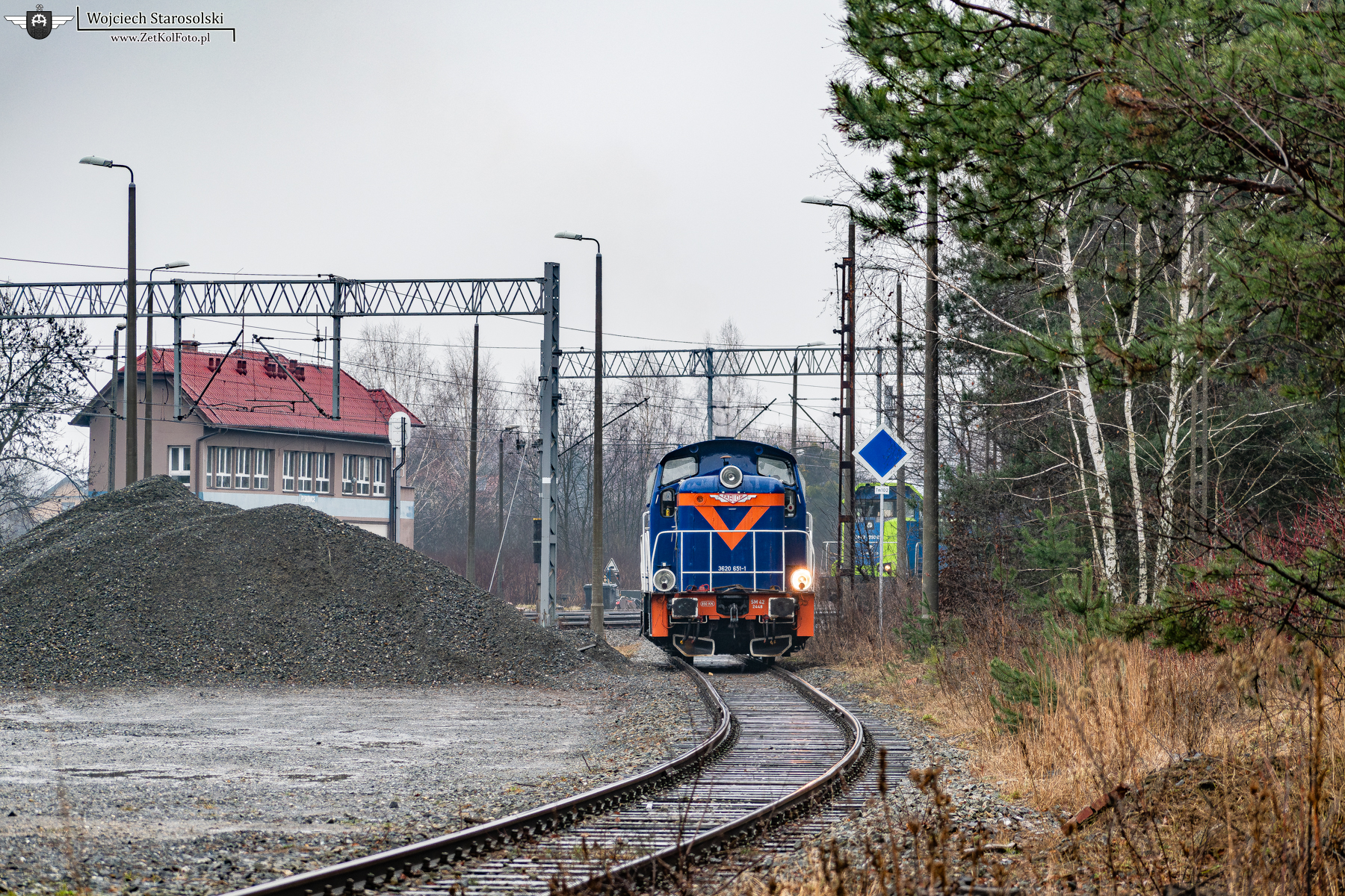 01.02.2024 | Pyskowice | Stacja Pyskowice | SM42-2448 luzem oczekuje zgody na wykonanie manewrów w celu ściągnięcia składu wagonów PKP Cargo przeznaczonych do naprawy na zakład firmy PROTOR S.A. Po lewej stronie widoczna jest nastawnia Pk.