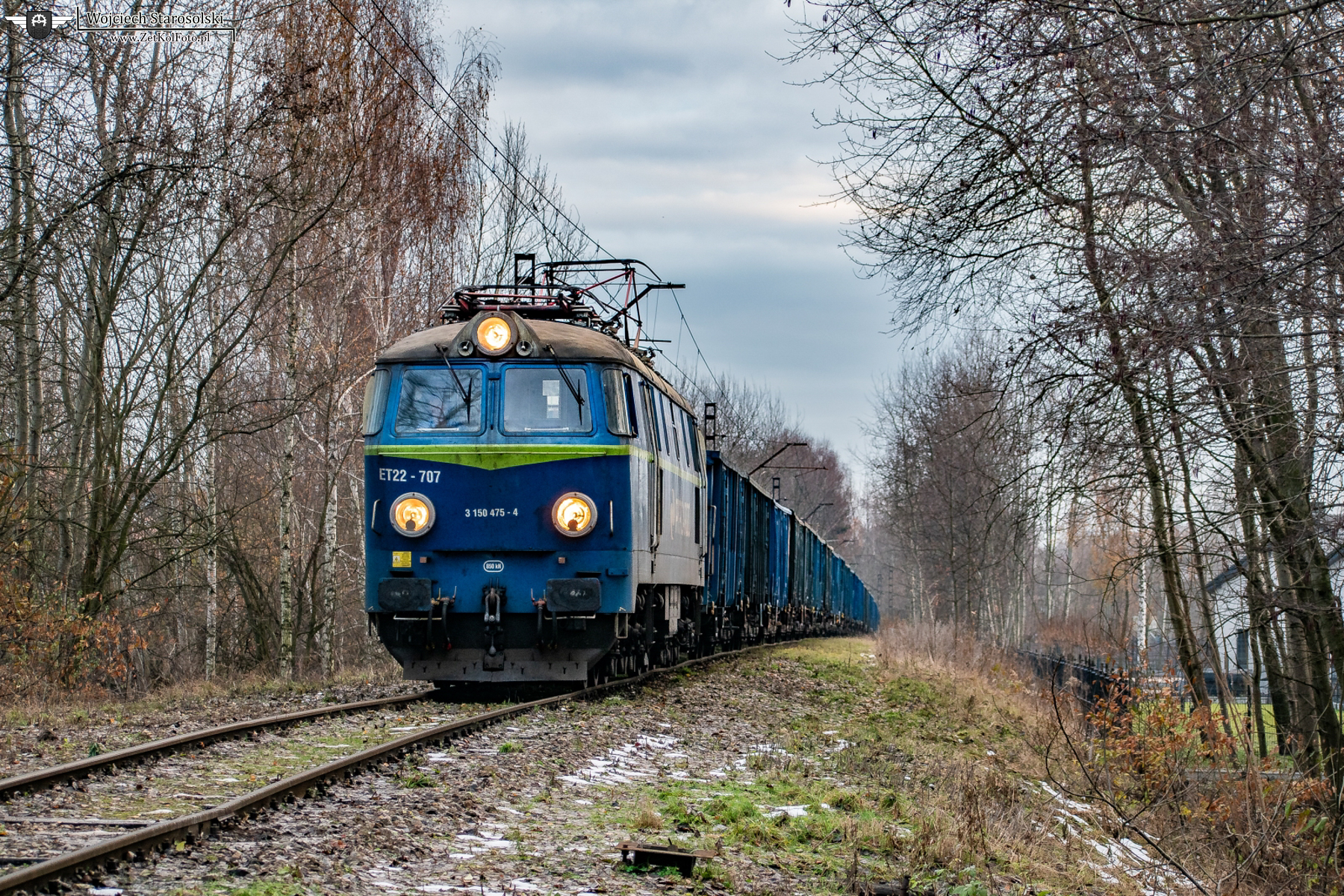 12.12.2023 | Ruda Śląska | Szlak Ruda Bielszowice-Ruda Śl. KWK Halemba | ET22-707 z ładownym wahadłem węglarek z KWK Halemba pokonuje szlak Ruda Bielszowice-Ruda Śląska KWK Halemba, jadąc w kierunku Bielszowic.