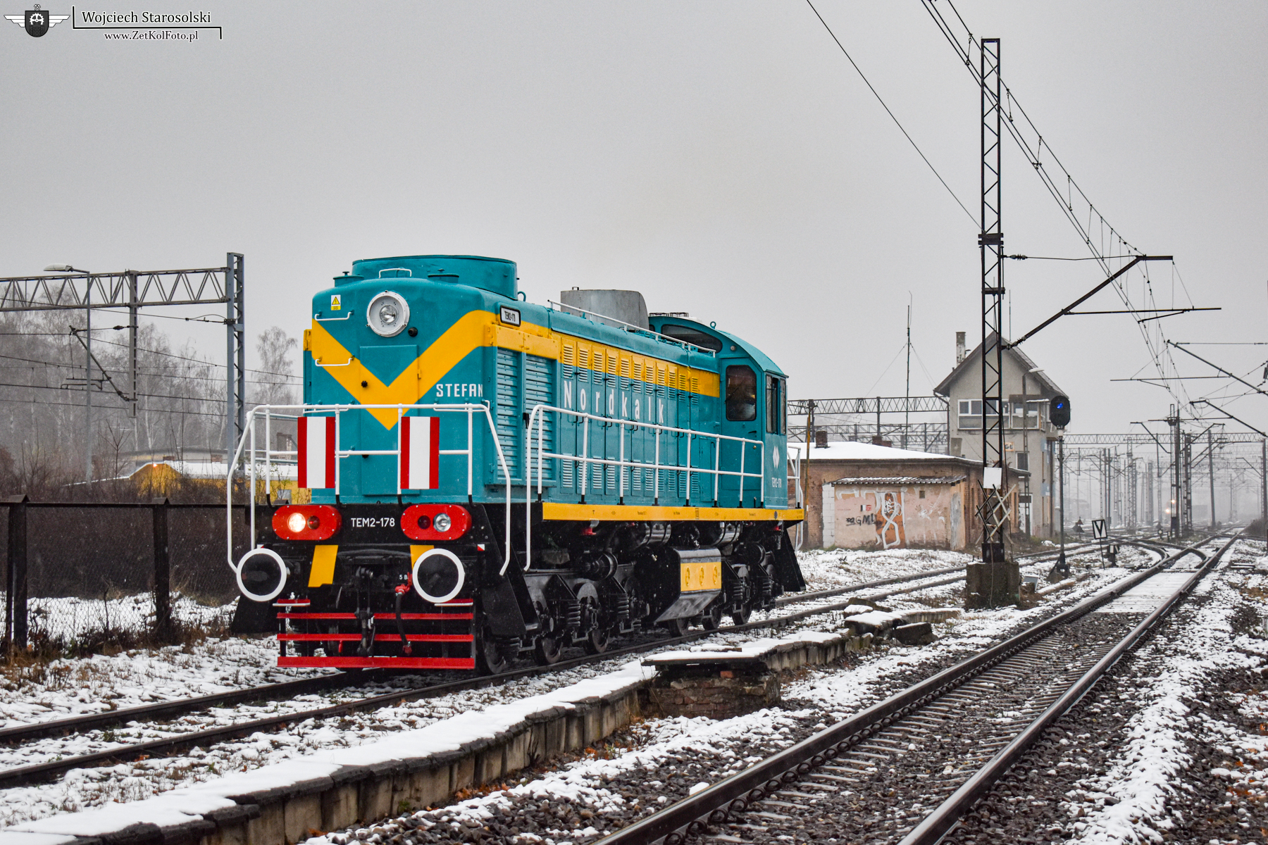 28.11.2021 | Gliwice | Stacja Gliwice Łabędy | Świeży TEM2-178 "Stefan" należący do Nordkalku po wyjechaniu z terenu Huty Łabędy, oczekuje podania dalszych manewrów na w/w stacji, w celu podjęcia jazdy próbnej do Strzelec Opolskich i nazad. W tle nastawnia "GŁ".