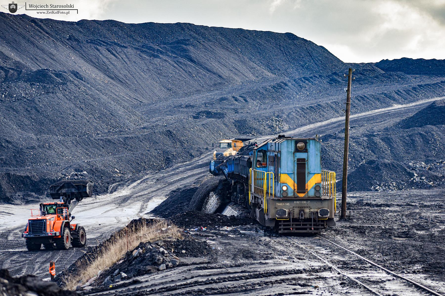 12.02.2022 | Knurów | Zwałowisko KWK Knurów | T448P-145 rozładowuje krótki skład radwanów z odpadami górniczymi na zwałowisku KWK Knurów.