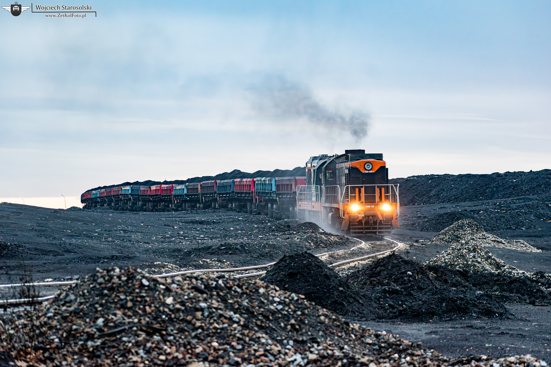 28.12.2023 | Knurów | Bocznica zwałowiska Jagielnia | Chyba najbardziej oklepana maszyna pracująca obecnie na Szczygłowicach, czyli TEM2-152 pcha skład 22 radwanów z odpadami górniczymi KWK Szczygłowice z podg.Krywałd na zwałowisko Jagielnia. Za tamarą znajduje się S200-250. Po wepchnięciu składu na zwałowisko Tamara zjedzie na Krywałd i będzie oczekiwać zakończenia rozładunku, po czym sciągnie S200 i próżny skład na KWK Szczygłowice.
