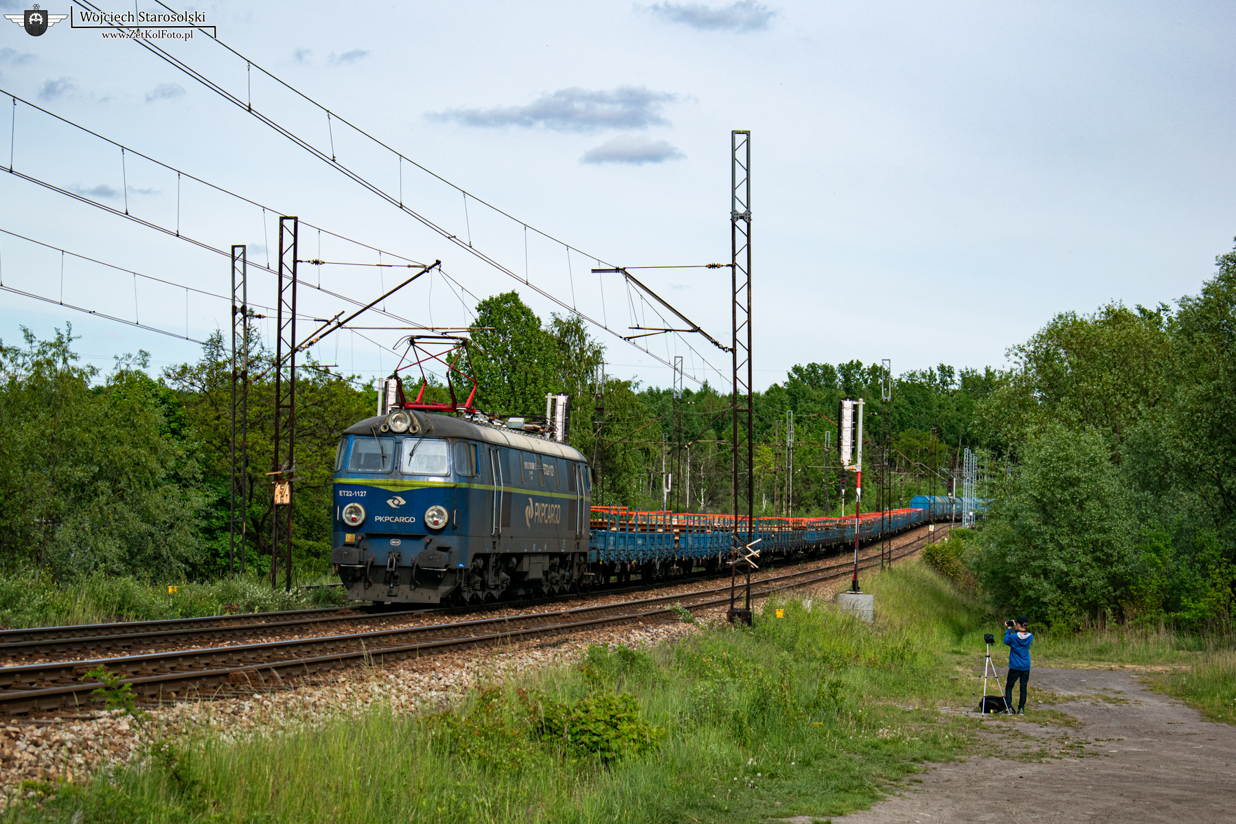 23.05.2022 | Ruda Śląska | Szlak Ruda Kochłowice-podg.Radoszowy | ET22-1127 podczas popychania składu mieszanego na wzniesieniu w kierunku Radoszów. Na czele jechała lokomotywa ET22-1208. Po około 10 minutach ET22-1127 wróciła luzem do Kochłowic.
