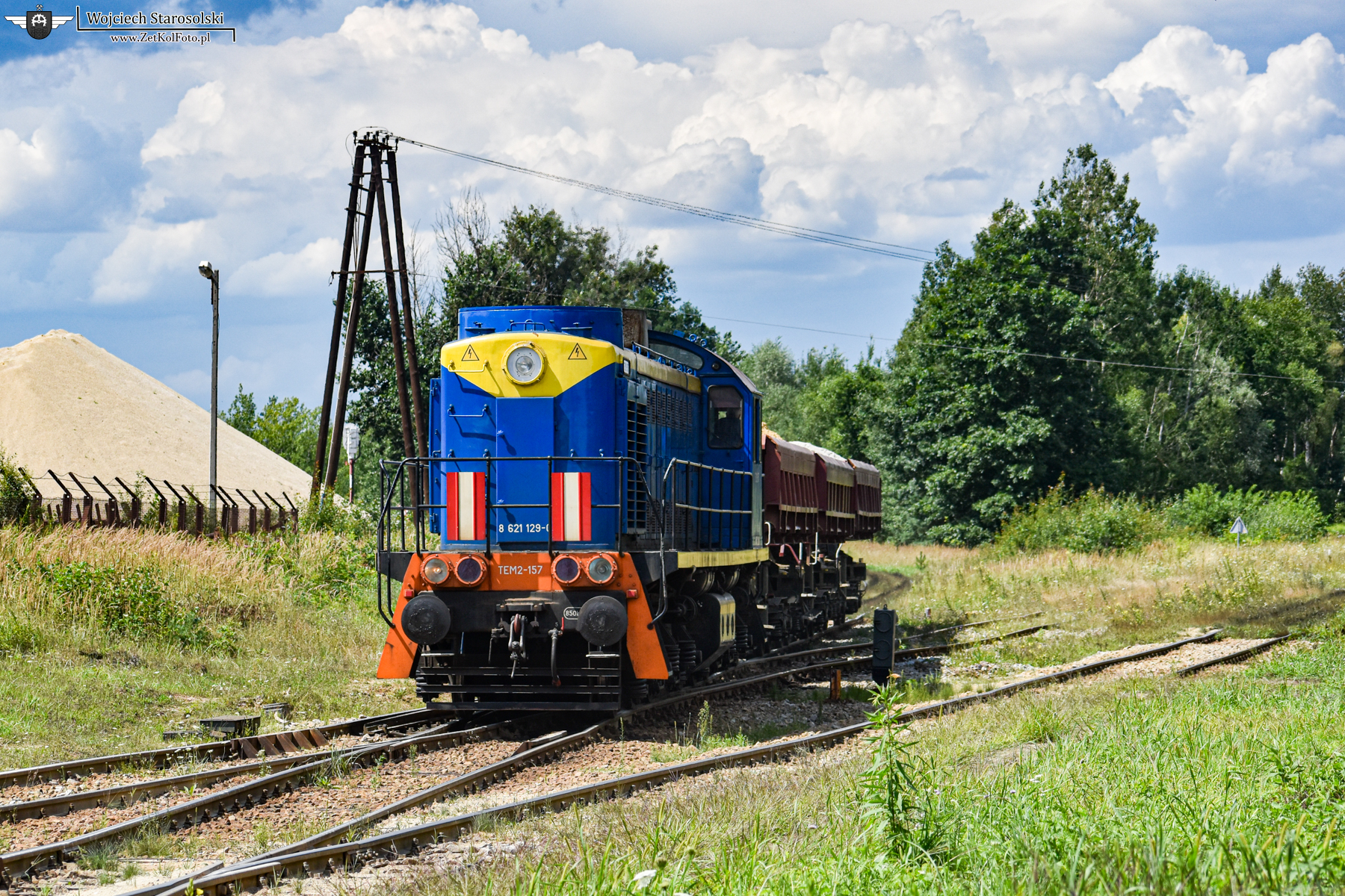 03.08.2021 | Kotlarnia | Stacja Kotlarnia | TEM2-157 spycha trzy radwany do żwirowni w stacji Kotlarnia.