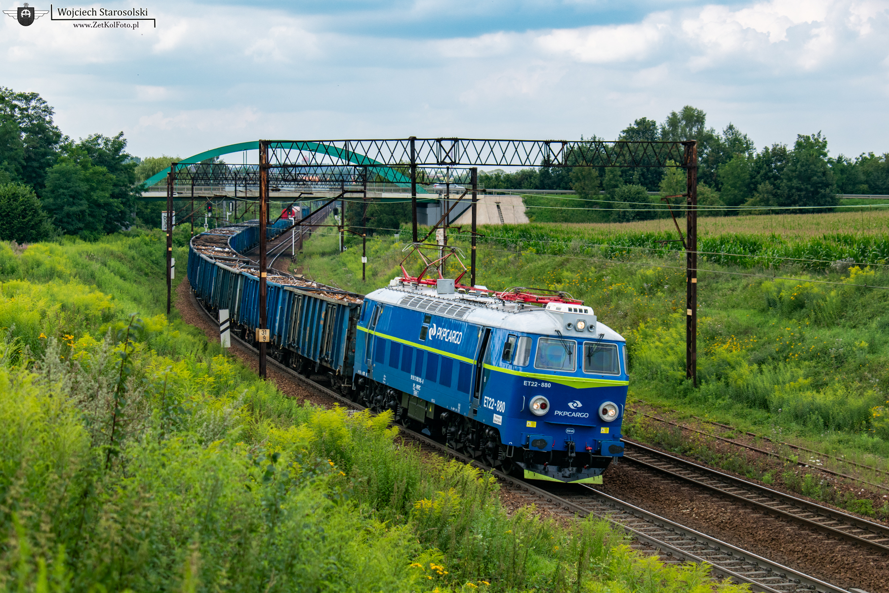 02.08.2022 | Tarnowskie Góry | Szlak Nakło Śląskie-Tarnowskie Góry | ET22-880 ze składem mieszanym pokonuje w/w szlak w kierunku Nakła Śląskiego. Warto zwrócić uwagę na zielony dodatek na zgarniaczu lokomotywy który dodaje mu dużo uroku.