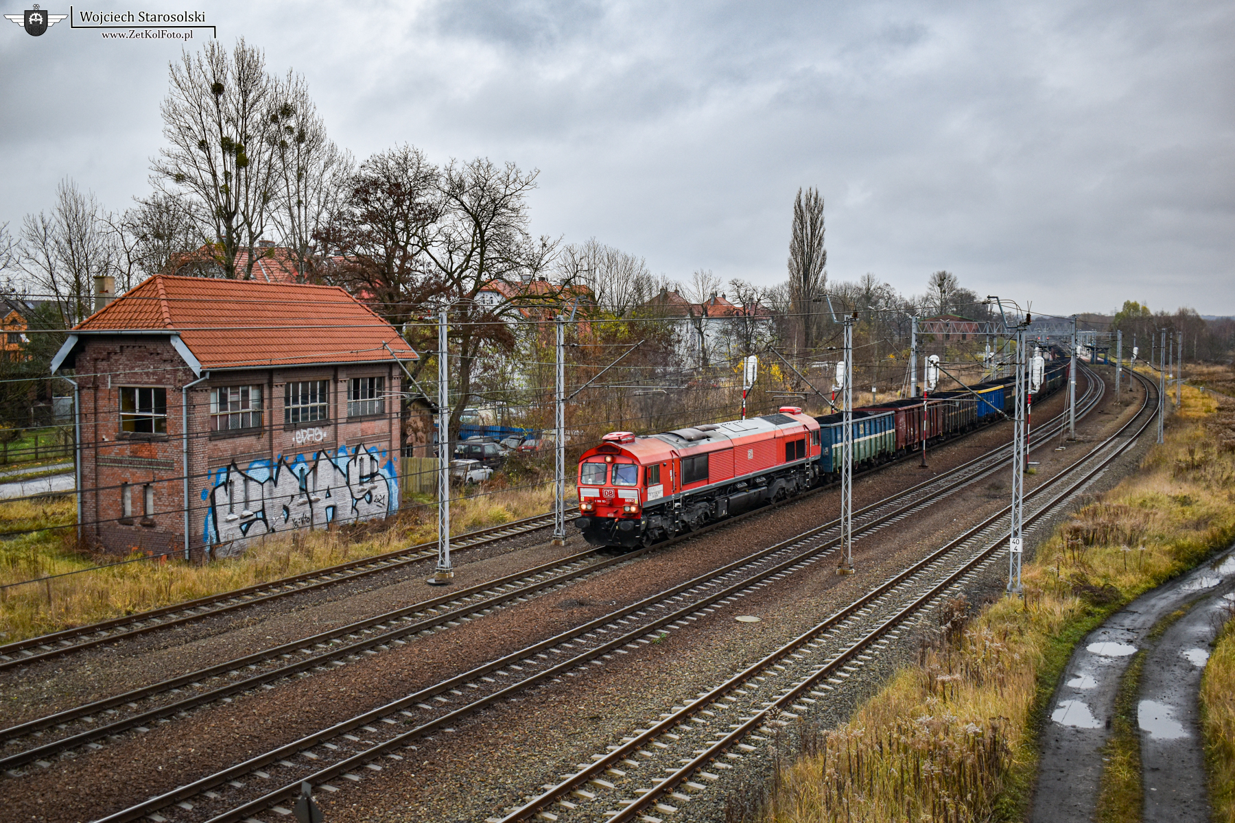 20.11.2021 | Pyskowice | Stacja Pyskowice | 66163 ze składem ładownych węglarek rusza z Pyskowic w kierunku posterunku odgałęźnego Paczyna, mijając opuszczoną nastawnię Pk6.