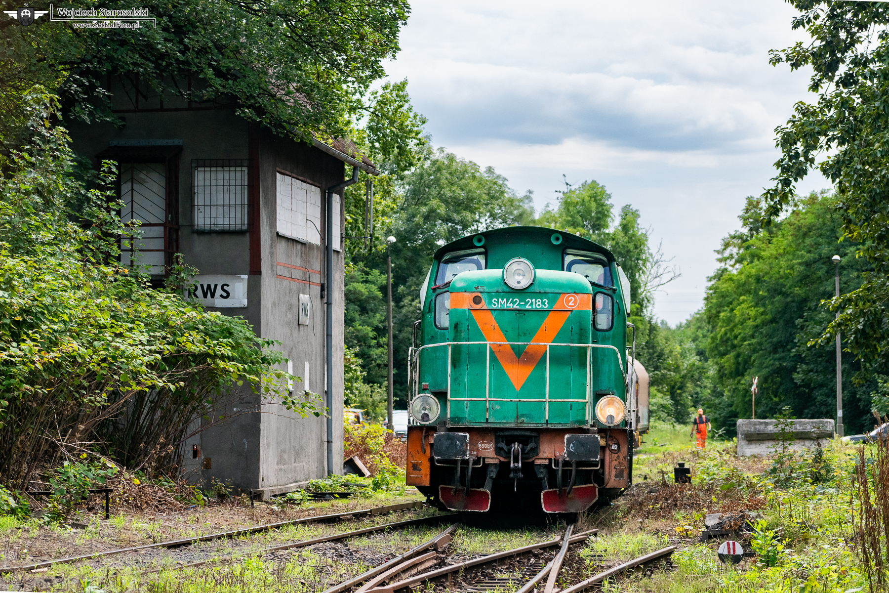 08.08.2022 | Ruda Śląska | Bocznica wydziału profili giętych huty Pokój | SM42-2183 prowadzi skład szmaciaków do WPG. Skład mija dawną stację Ruda Wschodnia.