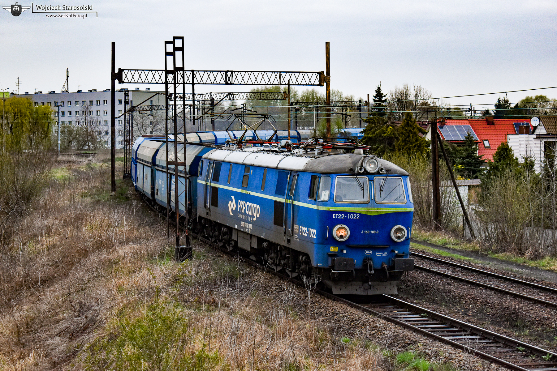 ET22-1022 z talbotami mija podg.Maciejów Północny, zjeżdżając na łącznicę numer 672 w kierunku stacji Zabrze Makoszowy Kopalnia.