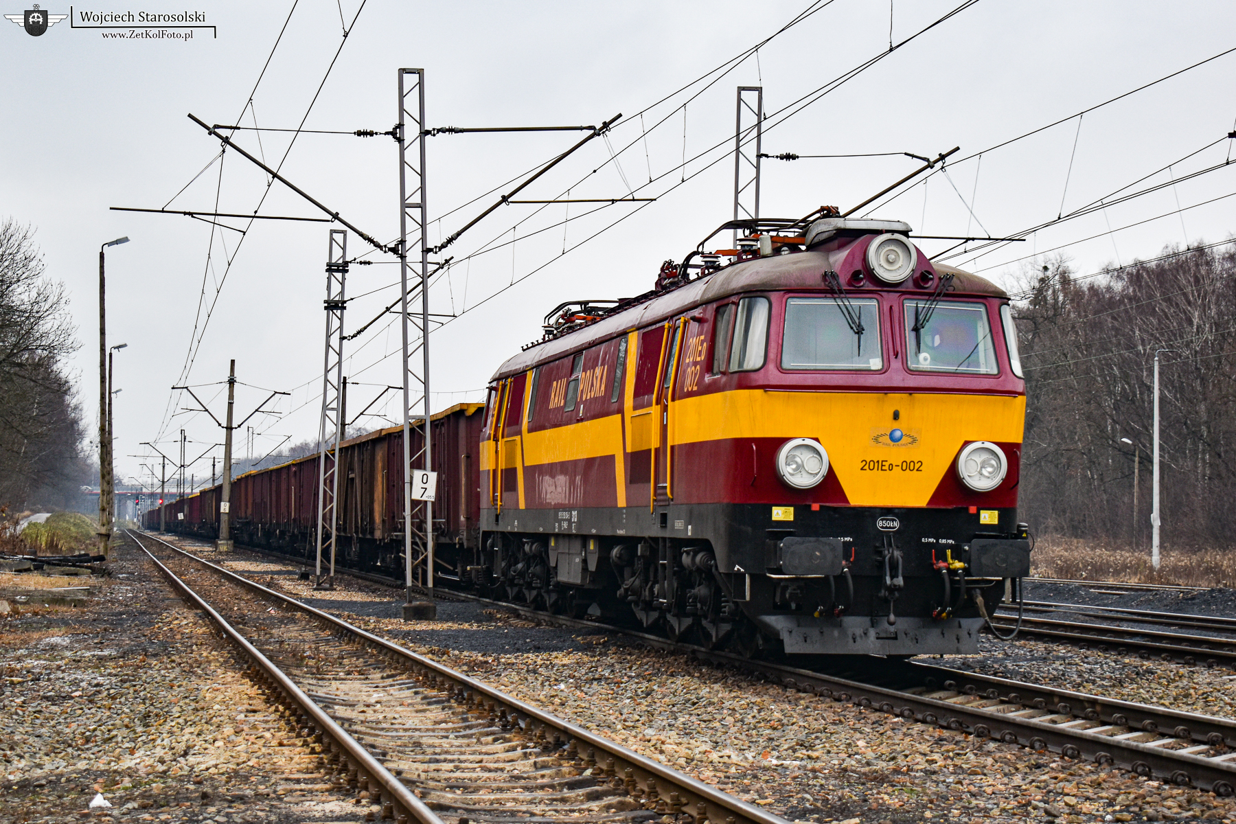05.12.2021 | Zabrze | Stacja Zabrze Makoszowy Kopalnia | 201Eo-002 należący do RailPolska, stoi wygaszony ze składem węglarek na w/w stacji, ustawiony czołem na Knurów.