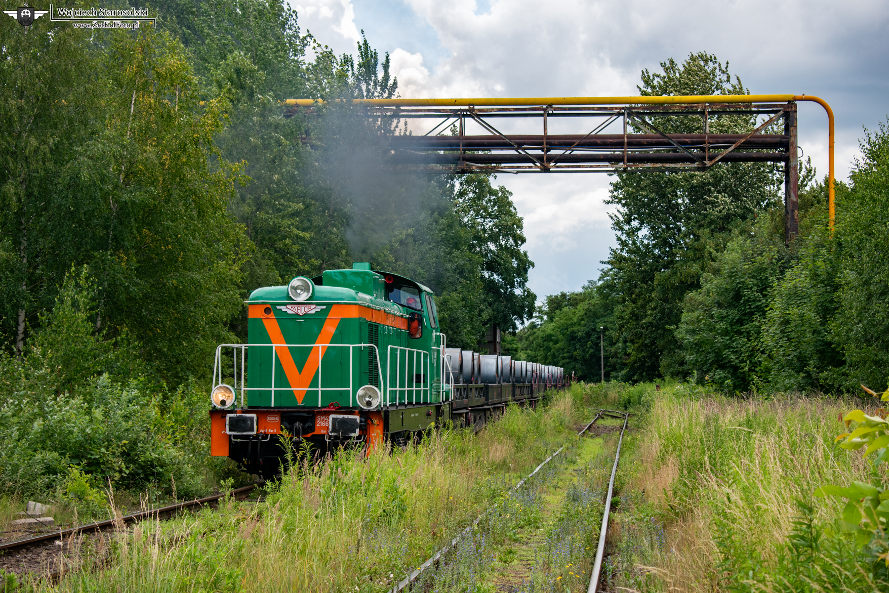 02.07.2024 | Ruda Śl. | Bocznica Wydziału Profili Giętych huty Pokój | SM42-2166 z platformami na haku mija dawną stację Ruda Wschodnia w kierunku WPG.