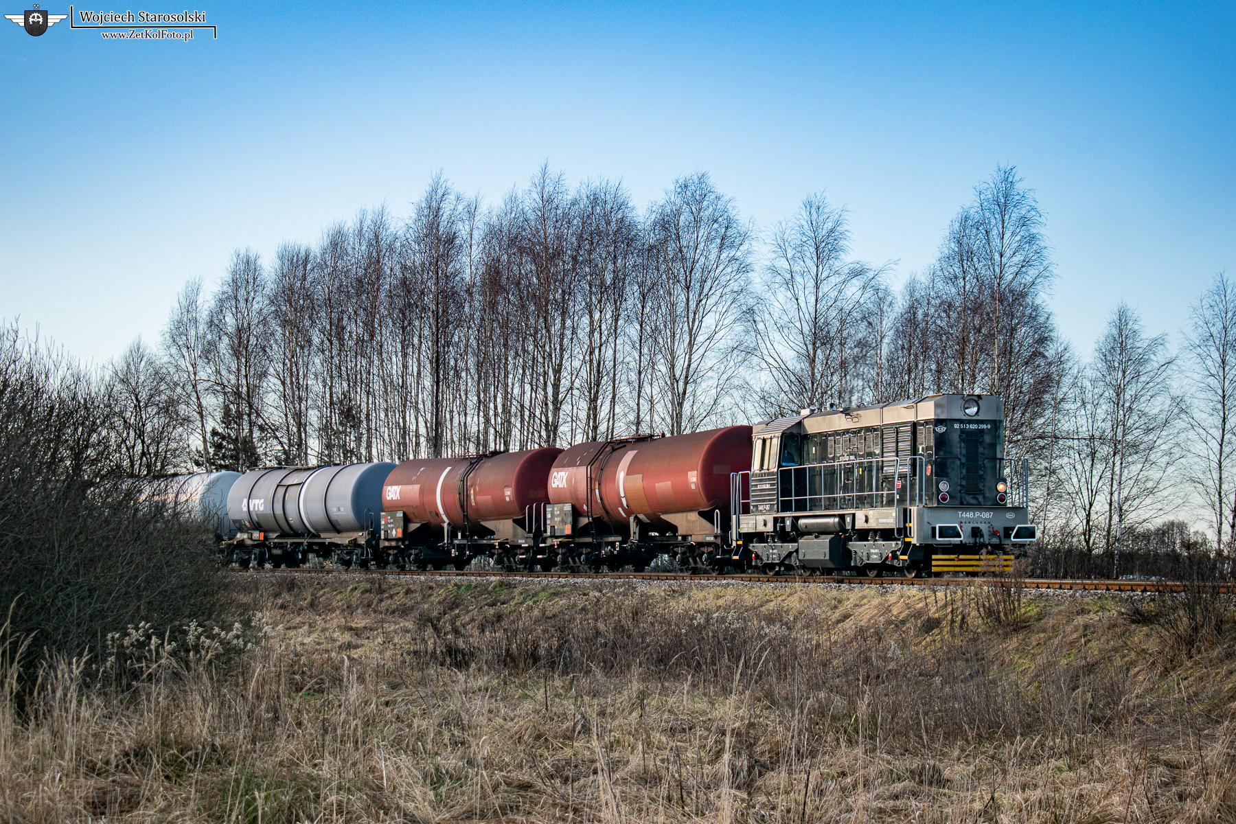 16.01.2023 | Boronów | Tor do bocznicy bazy paliw PERN w Boronowie | T448P-087 spycha partię 5 beczek na teren w/w bazy paliw. Z racji iż tor wyciągowy do stacji jest bardzo krótki, jeden skład trzeba brać na 4/5 razy.