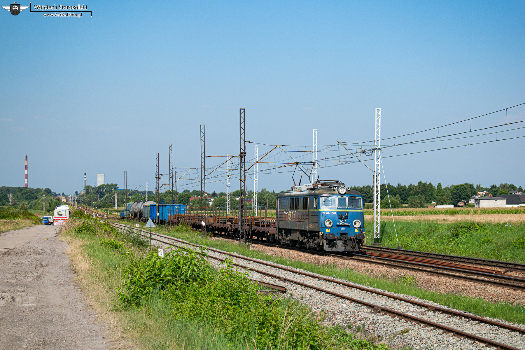 22.07.2022 | Gierałtowice | Szlak podg.Gierałtowice-Knurów | EU07-1507 z mieszańcem jedzie w kierunku Gierałtowic.