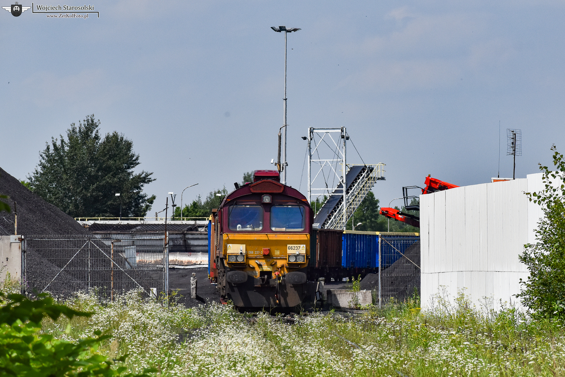 13.07.2021 | Ruda Śląska | Bocznica BB-POL | Class 66237 ze składem węglarek stoi wygaszony na terenie bocznicy BB-POLu, odchodzącej od stacji Ruda Chebzie.