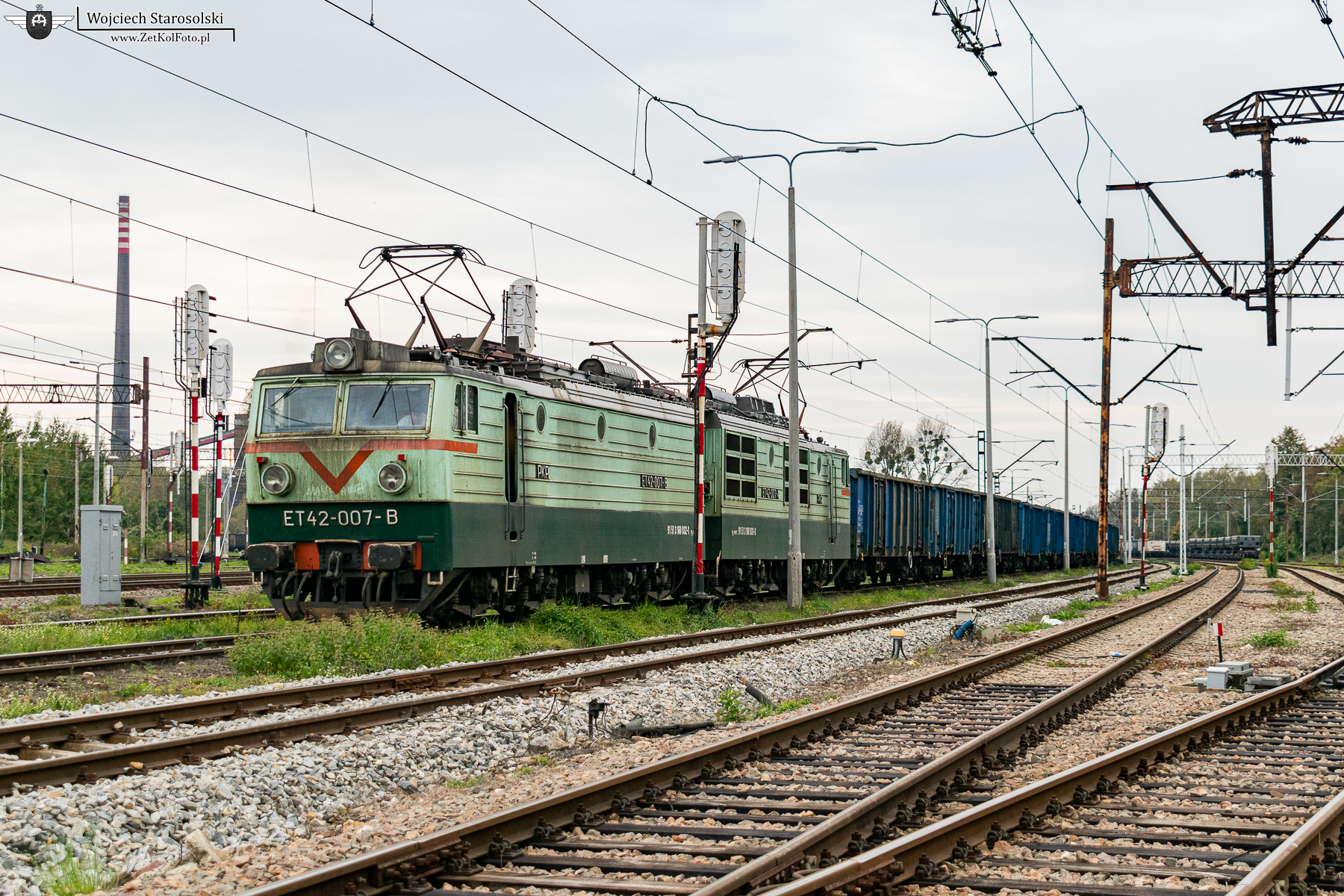 15.10.2022 | Zabrze | Stacja Zabrze Biskupice | ET42-007 z węglarkami stoi z węglarkami w w/w stacji czołem na Bytom Bobrek.