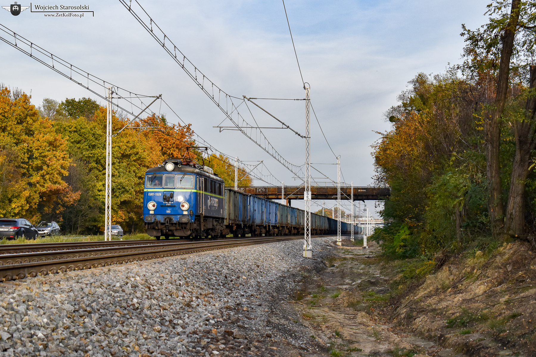 27.10.2021 | Zabrze | Szlak Zabrze Biskupice-podg.Maciejów Płn. | EU07-1529 z węglarkami sunie szybkim tępem świeżo oddanym po modernizacji szlaku Zabrze Biskupice-Podg.Maciejów Północny, w kierunku Maciejowa.