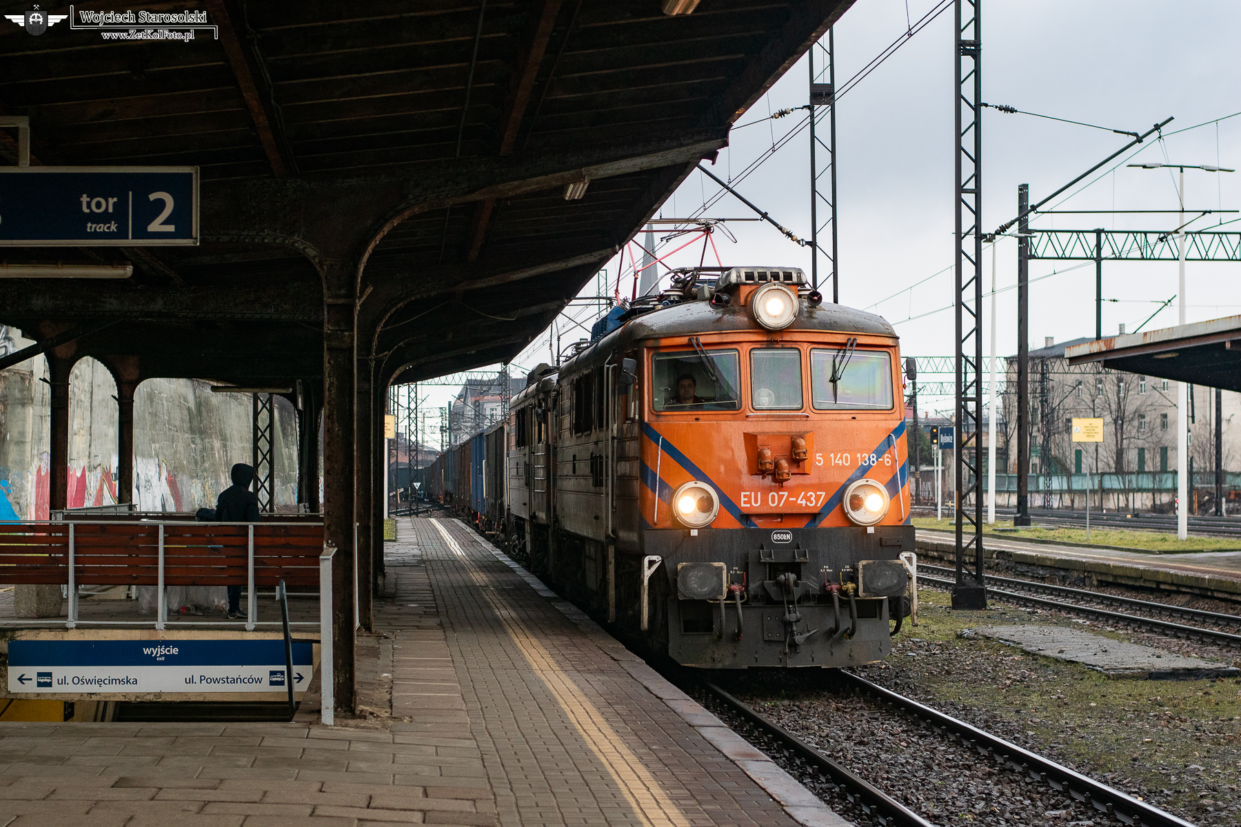 25.02.2023 | Mysłowice | Stacja Mysłowice | EU07-437 z węglarkami mija Mysłowice w kierunku Sosnowca Jęzora/Mysłowic Brzezinki.