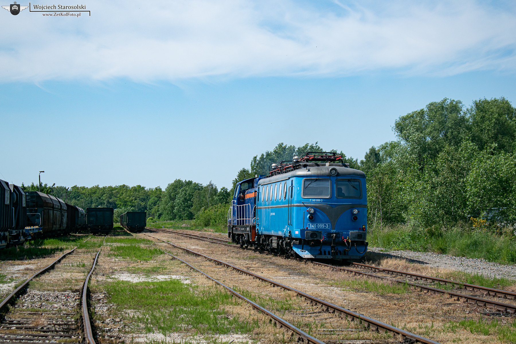 01.06.2023 | Pyskowice | Bocznica Śląskiego Zaplecza Remontowego | SM42-2448 ściąga z ŚZR Bobinę 140 099-3 do stacji Pyskowice PKP. Skład mija dawną stację piaskową w Pyskowicach.