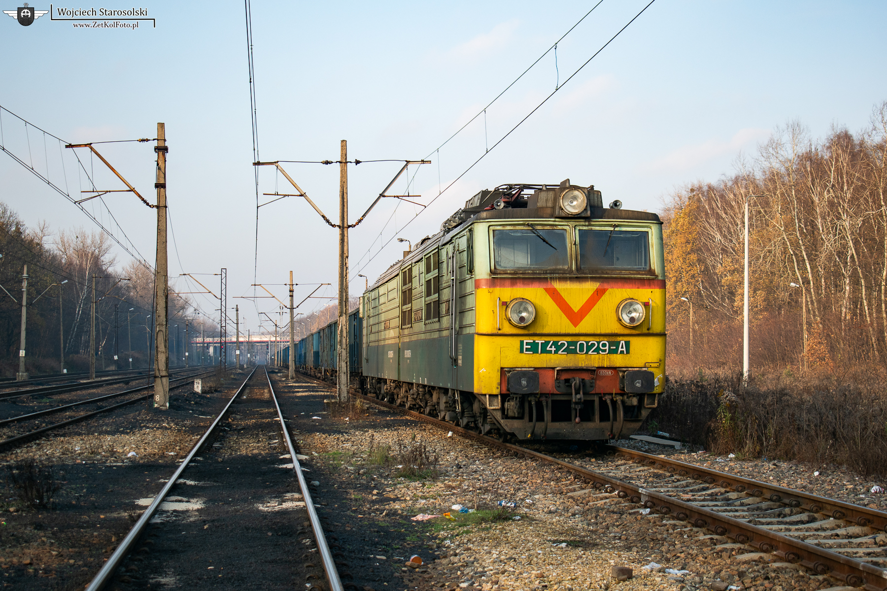 20.11.2022 | Zabrze | Stacja Zabrze Makoszowy Kopalnia | ET42-029 ze składem węglarek stoi wygaszony na w/w stacji.
