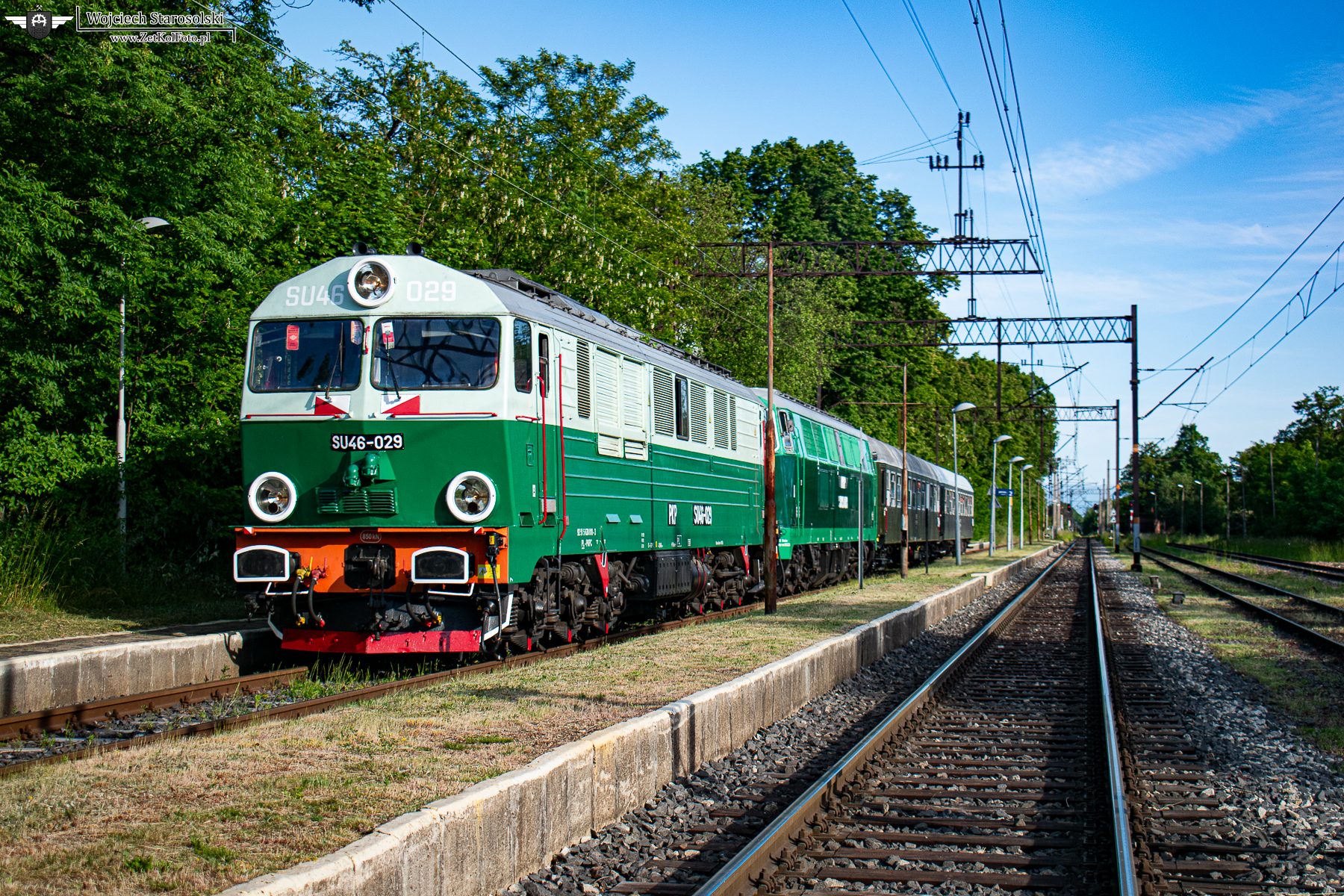 03.06.2023 | Gierałtów | Stacja Gierałtów Wykroty | SU46-029 z SU45-079 i dwoma wagonami na haku stoi na w/w stacji czołem na Węgliniec.