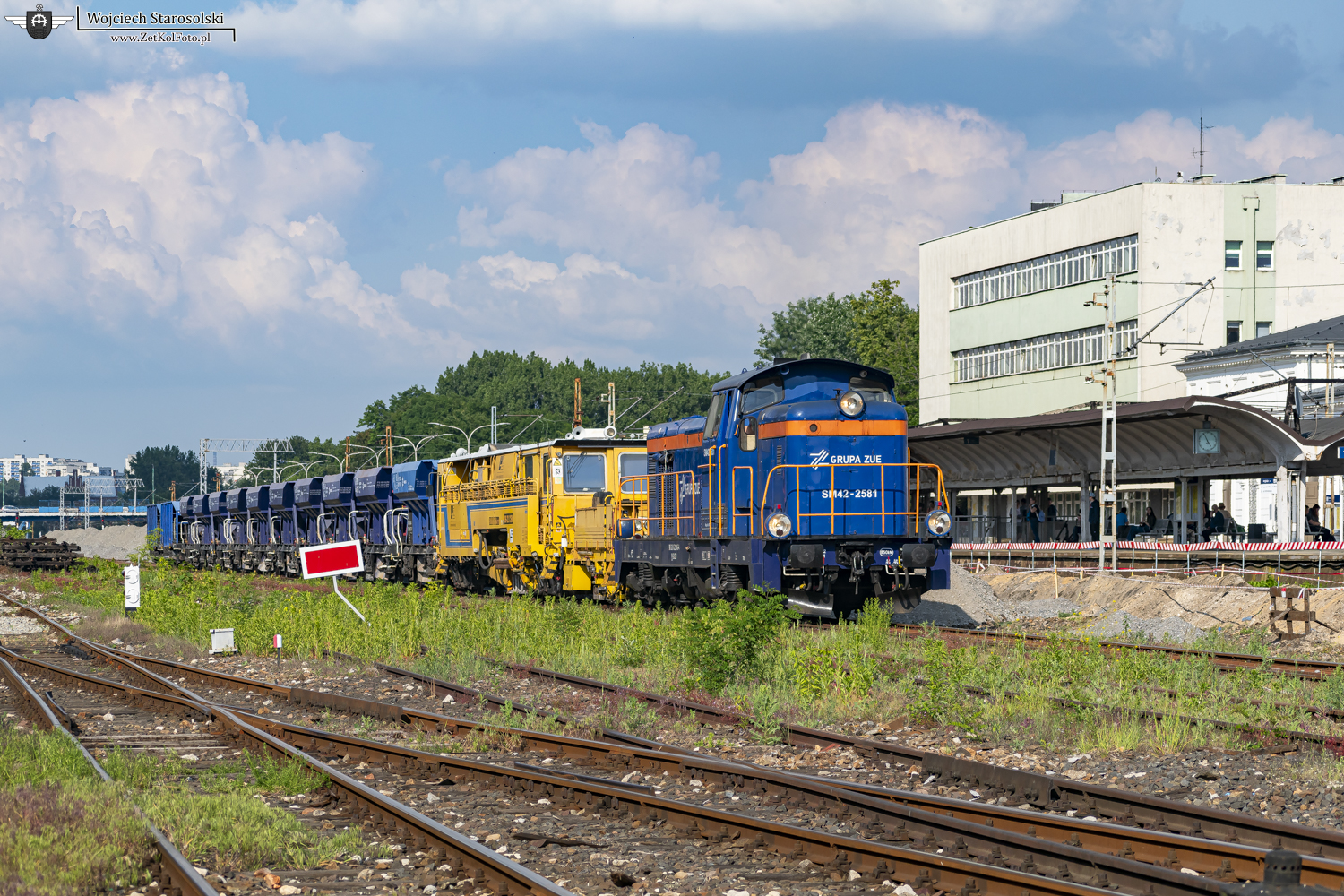 25.09.2024 | Sosnowiec | St.Sosnowiec Główny | SM42-2581 z plasserem i szutrówkami na haku oczekuje wyjazdu w kierunku Sosnowca Płd.