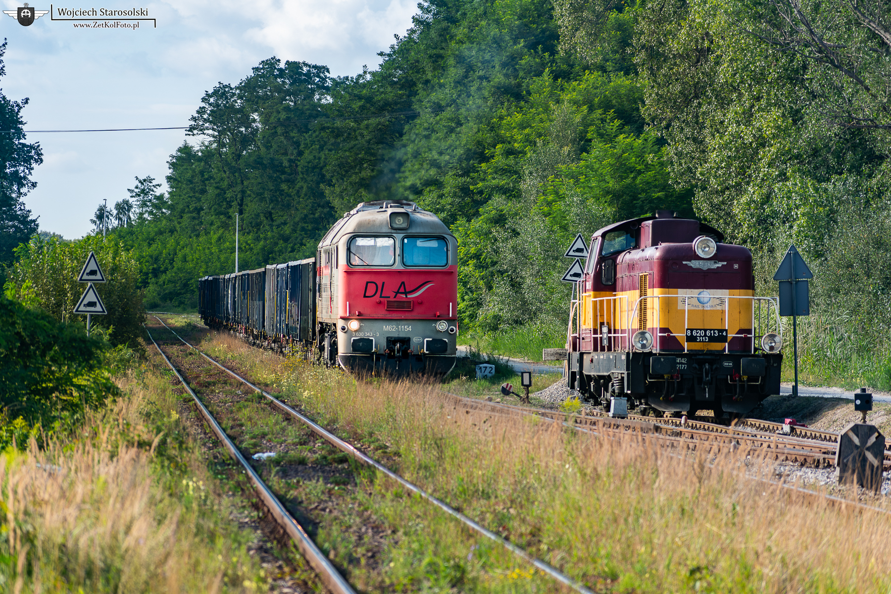 05.08.2024 | Doboszowice | B.sz. Doboszowice | M62-1154 wjeżdża do kopalni gnejsu Pomianów-Doboszowice. Obok SM42-2177 oczekująca na rozpoczęcie pracy jako manewrówka na zakładzie.