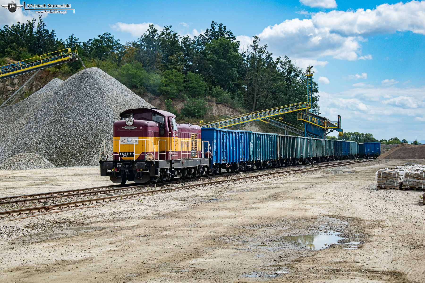 06.08.2024 | Doboszowice | Bocznica kopalni gnejsu Pomianów-Doboszowice | SM42-2177 z węglarkami podczas załadunku.