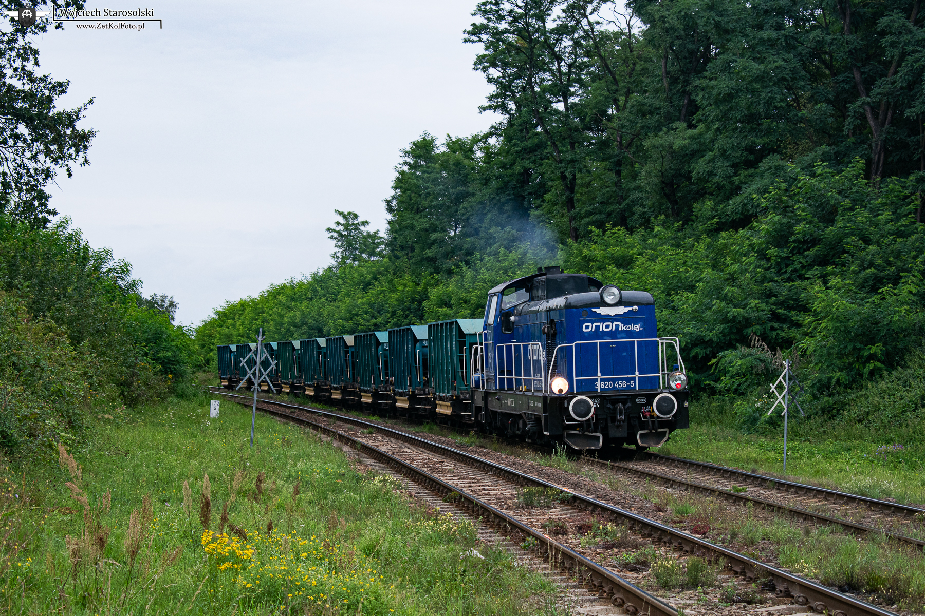 05.08.2024 | Doboszowice | Szlak b.sz. Doboszowice-Kamieniec Ząbkowicki | SM42-2464 z szutrówkami jedzie w kierunku Doboszowic.