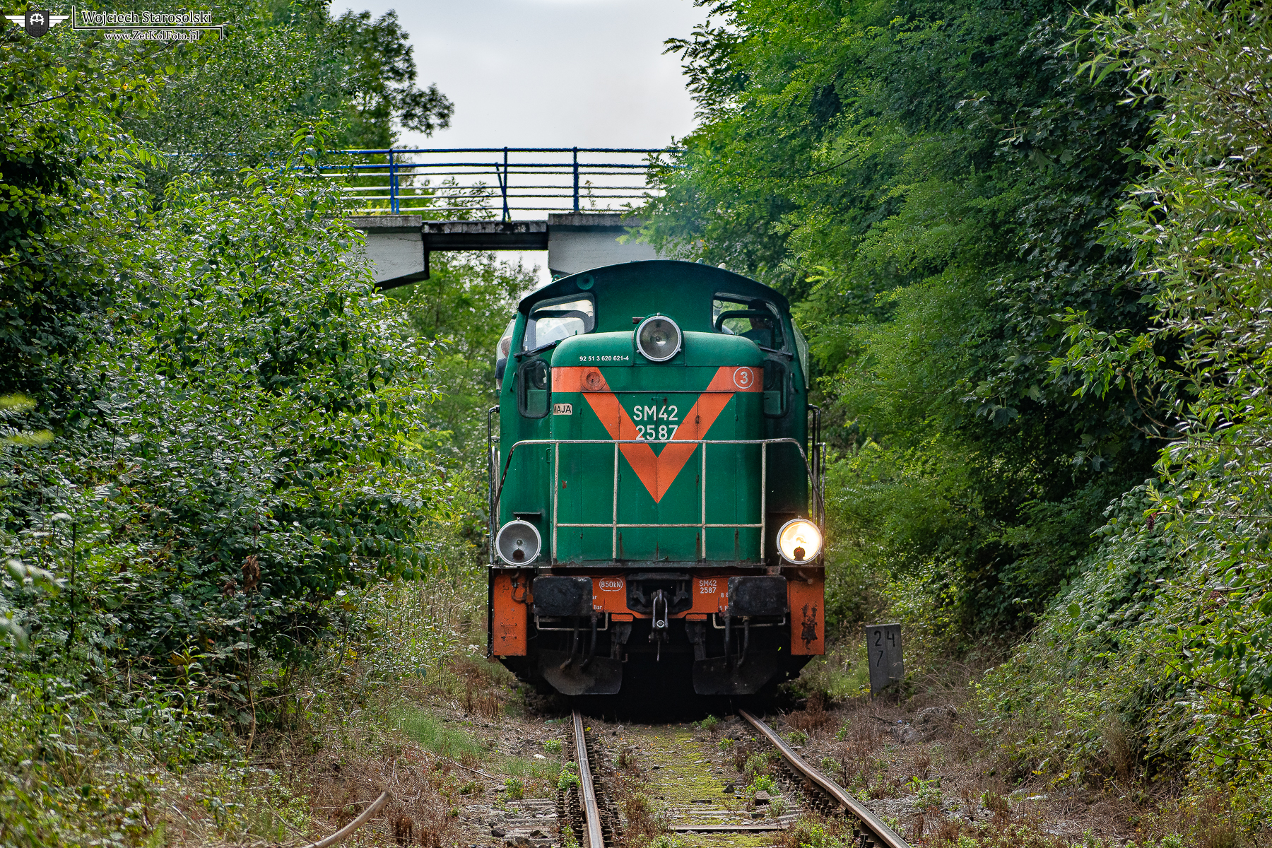 22.08.2024 | Pyskowice | Bocznica PROTOR S.A. W Dzierżnie | SM42-2587 z trzema wagonami 94A i Ty42-24 na haku spycha się w kierunku Dzierżna.
