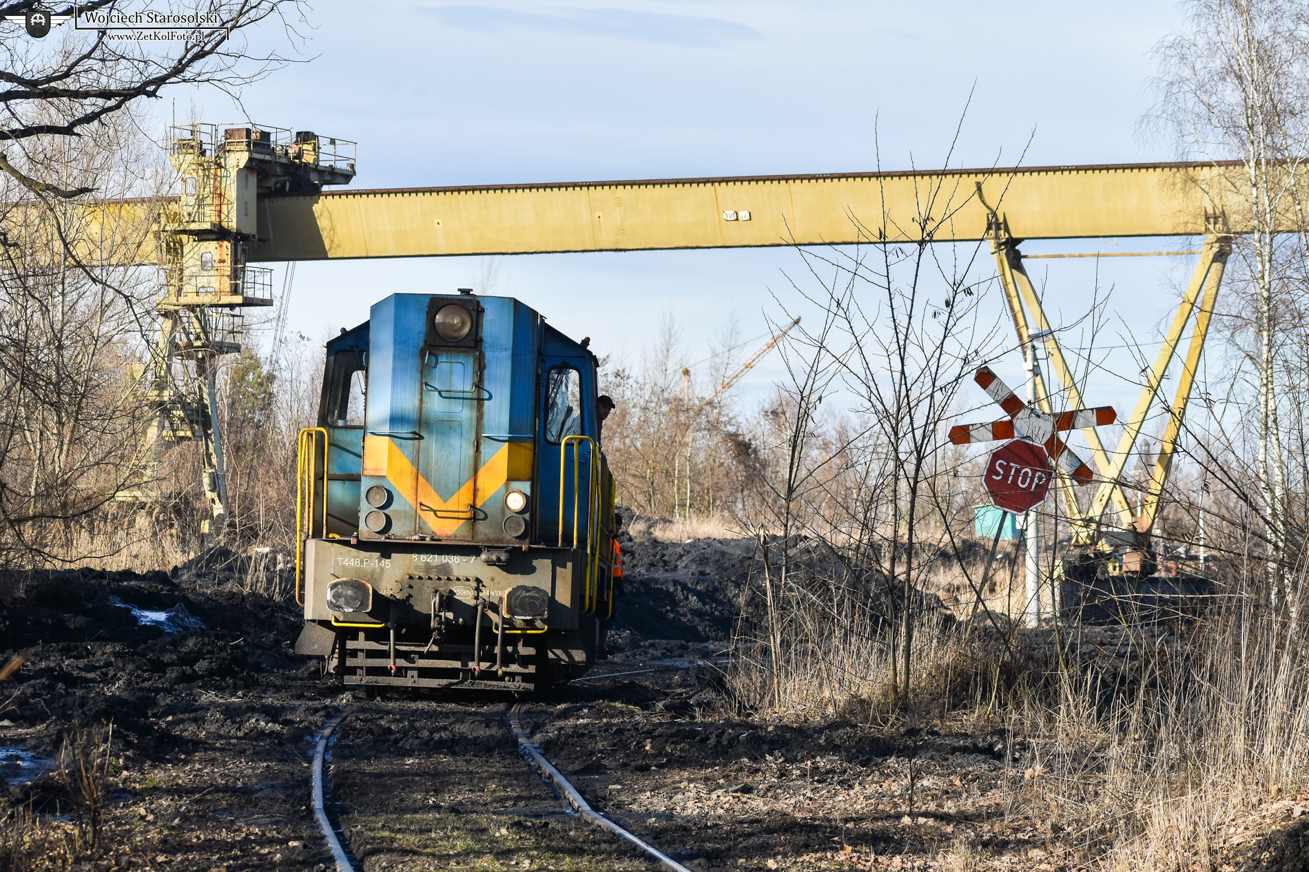 16.02.2022 | Knurów | Bocznica osadników mułowych KWK Knurów | T448P-145 wyjeżdża z tzw."Betonów" wracając na posterunek KnS.