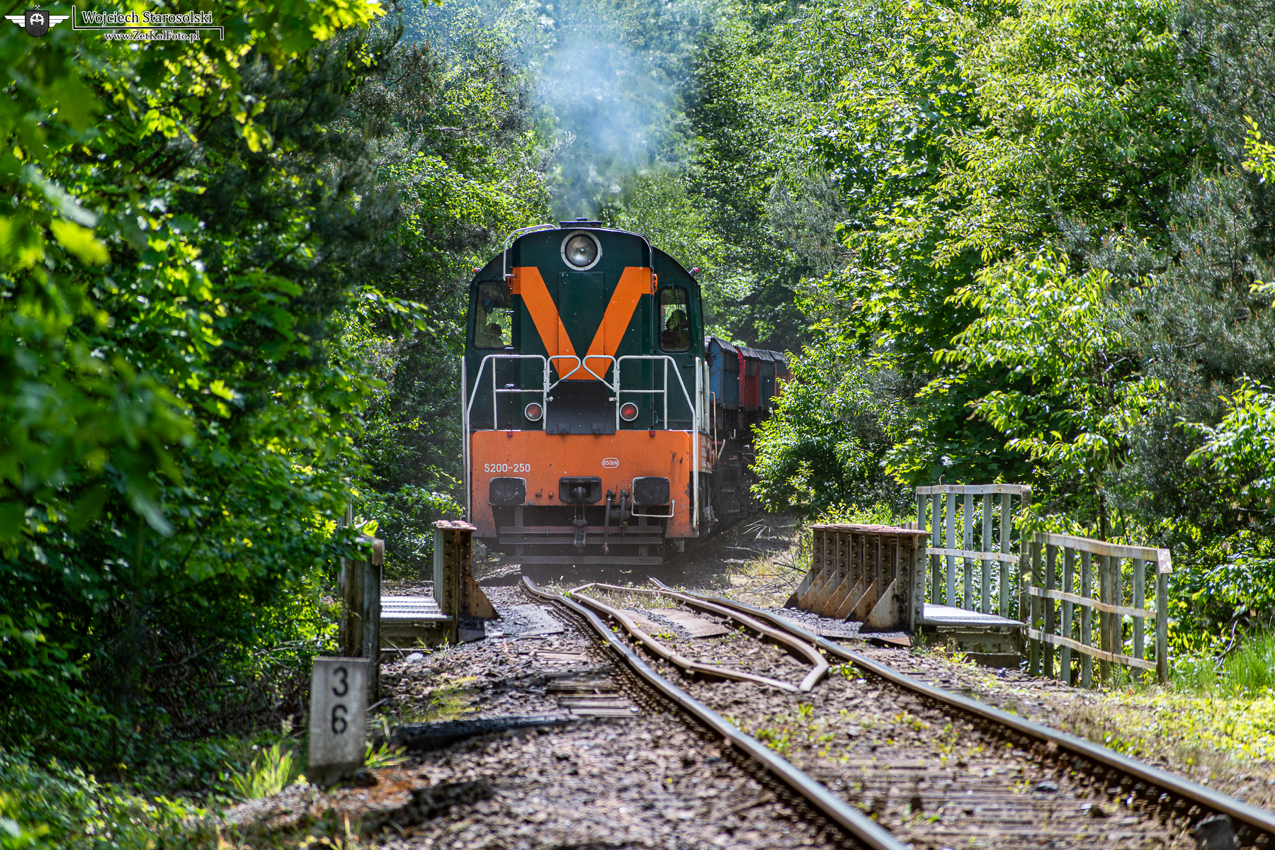 18.05.2024 | Knurów | Szlak KWK Szczygłowice-podg.Krywałd | S200-250 spycha próżne radwany z w/w podg. do KWK Szczygłowice. Skład rozładowywał odpady górnicze rzeczonej kopalni na zwałowisku Jagielnia.