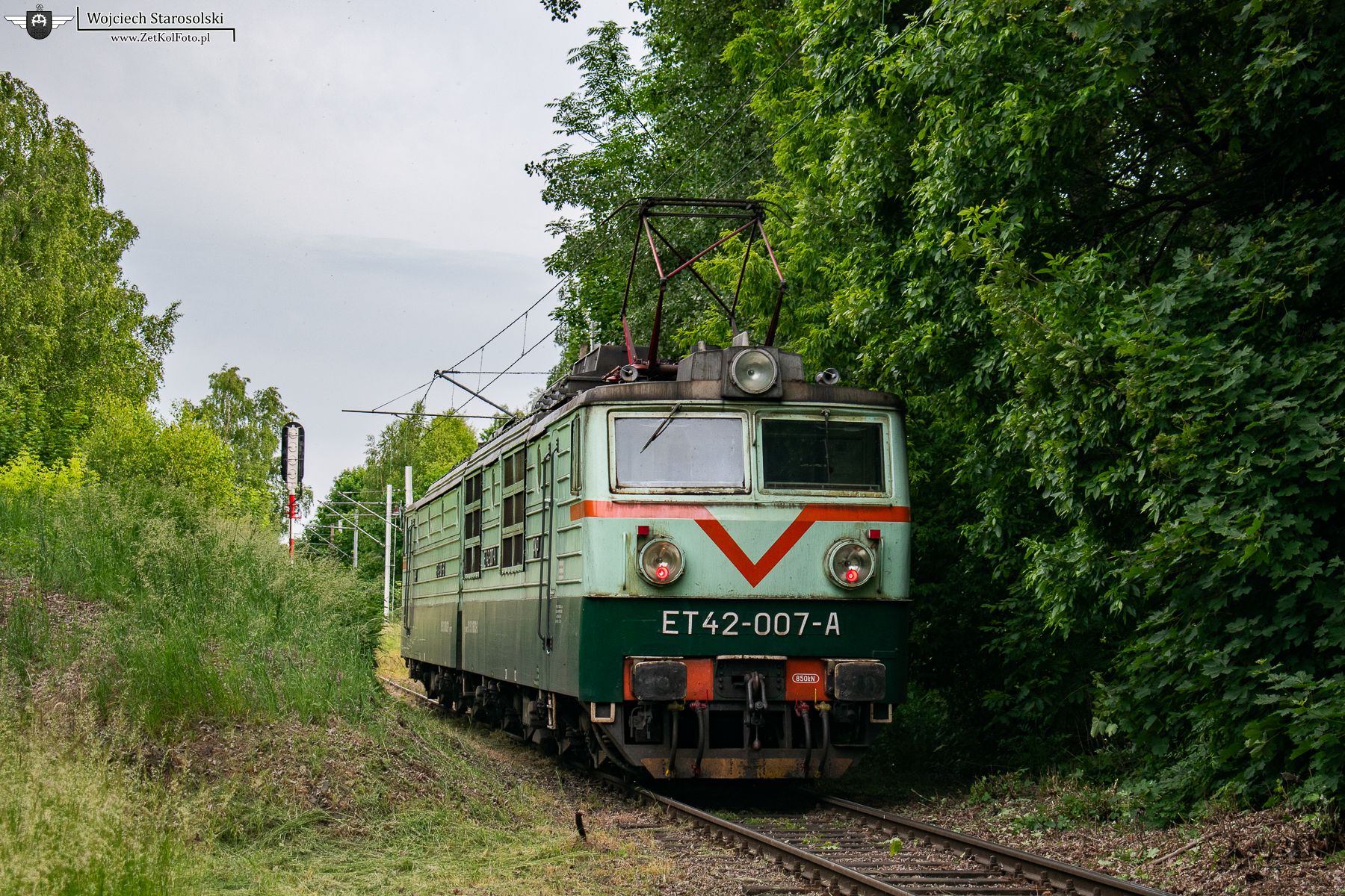 07.06.2023 | Gliwice | Stacja Gliwice Sośnica, okręg GSB | ET42-007 luzem jedzie w kierunku posterunku KS KWK Sośnica.