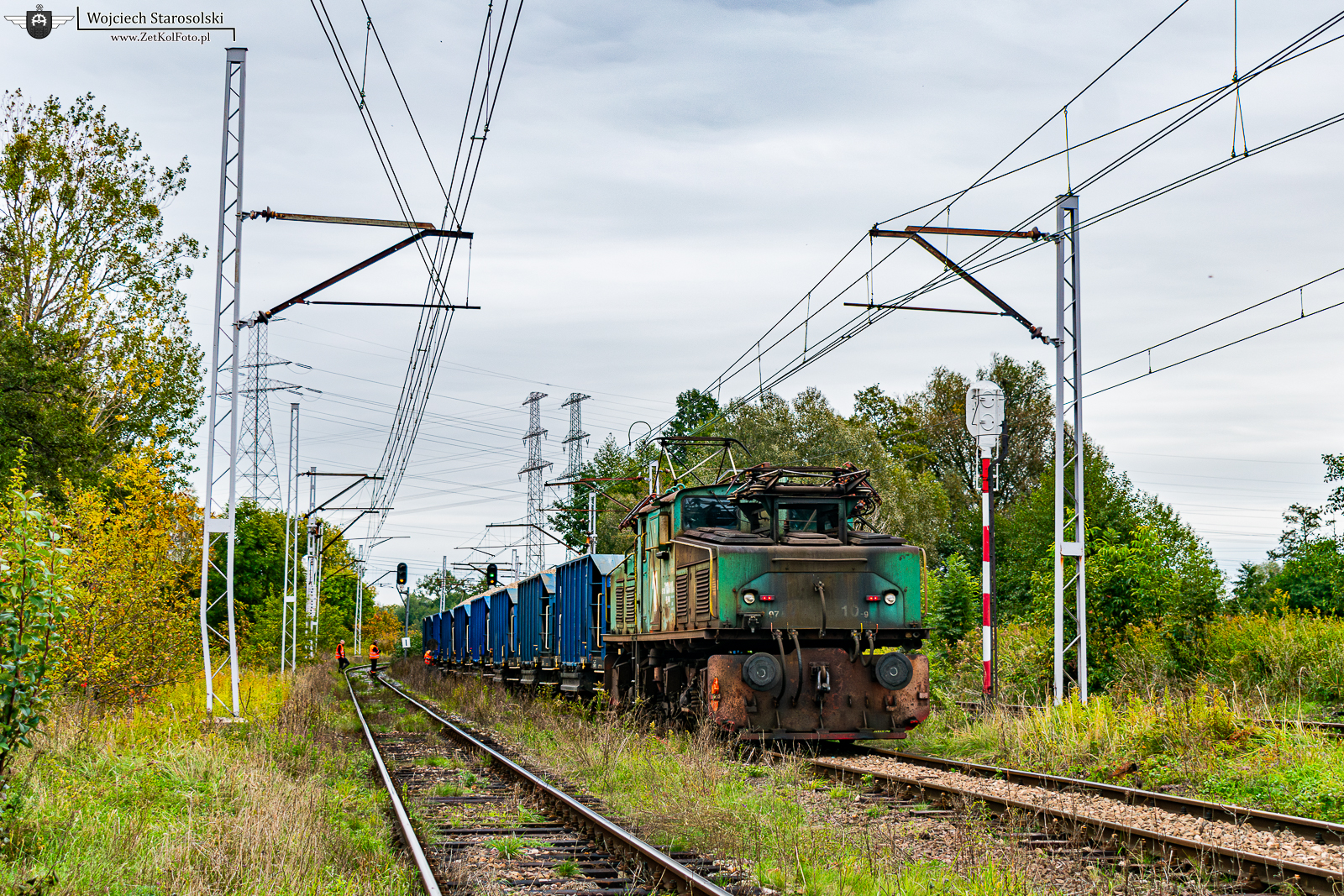 05.10.2024 | Pątnów | Szlak Estakada Wschód-Przesmyk Gaj | EL2-010 na popychu składu szutrówek pracuje podczas bieżących prac utrzymaniowych tegoż szlaku.
