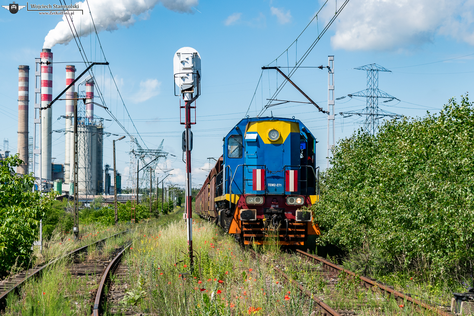 25.05.2024 | Pątnów | Stacja Estakada Wschód (EL. Pątnów | TEM2-271 ze składem talbotów 410V podczas manewrów w w/w stacji.