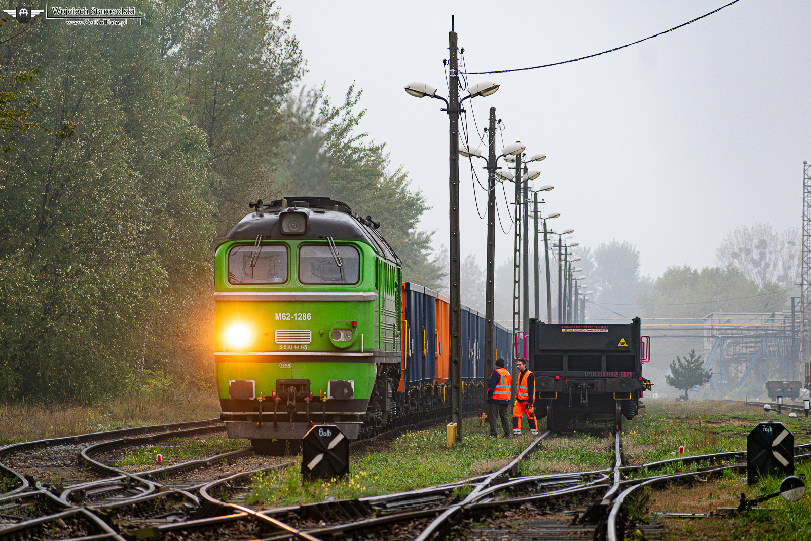 03.10.2024 | Ruda Śląska | Bocznica huty Pokój | M62-1286 z węglarkami na haku podczas próby hamulca na w/w zakładzie.