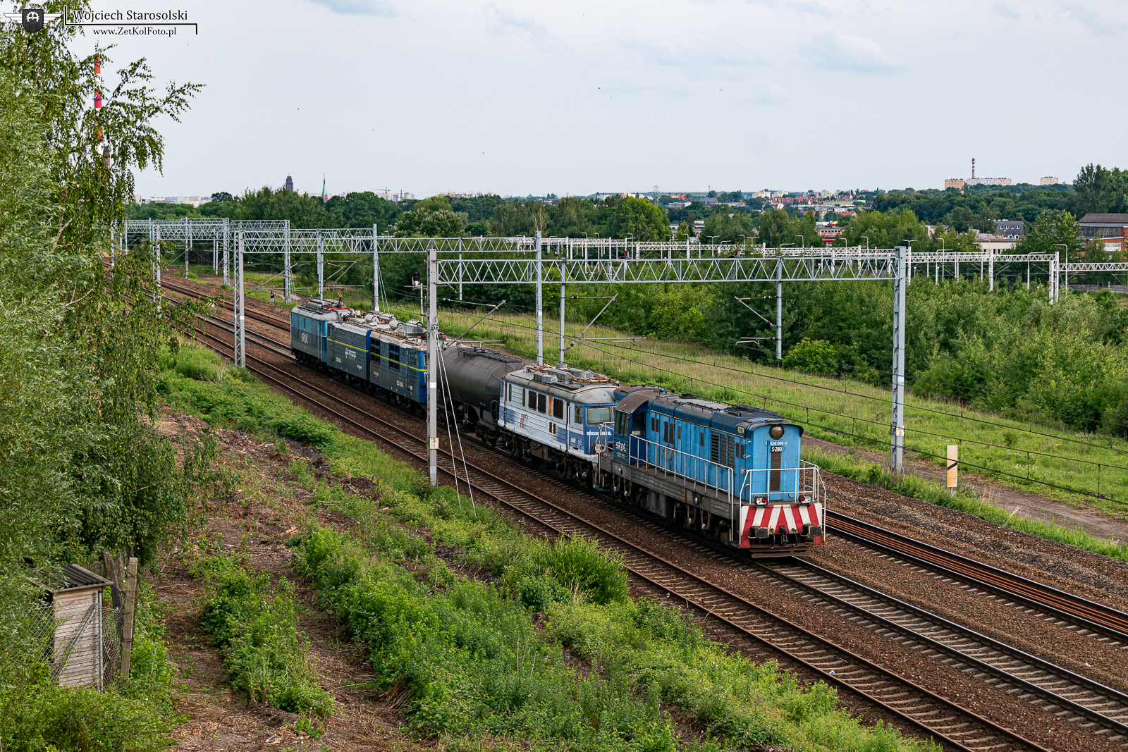 14.06.2024 | Gliwice | Szlak podg.Szobiszowice-Gliwice Łabędy | S200-280 na popychu krótkiego pociągu w skład którego wchodzi EU07 w barwach PKPIC oraz ET42-020 jedzie w kierunku Szobiszowic. Na uciągu Sputnik SKPL.