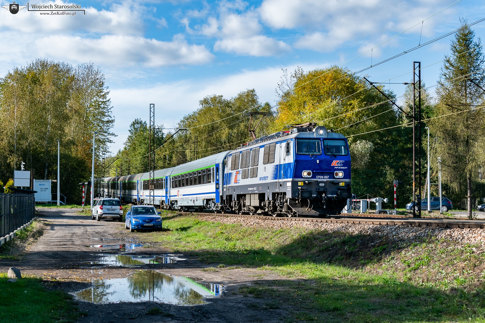 14.10.2024 | Ruda Śląska | Szlak podg.Radoszowy-Ruda Kochłowice | EP09-007 z pociągiem spółki PKP intercity pokonuje w/w szlak w kierunku Radoszów.