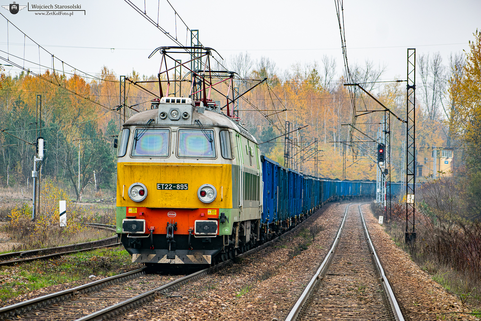 09.11.2024 | Ruda Śląska | Szlak podg.Radoszowy-Ruda Kochłowice | ET22-895 popycha skład węglarek w kierunku Radoszów. Na czele ET41-006.
