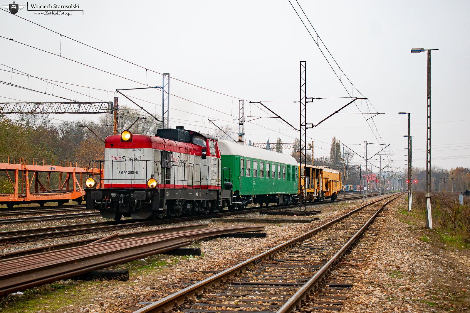 09.11.2024 | Ruda Śląska | Stacja Ruda Kochłowice | SM42-793 z wagonem socjalnym i maszyną torową oczekuje wyjazdu z Kochłowic w kierunku Hajduk/Radoszów.
