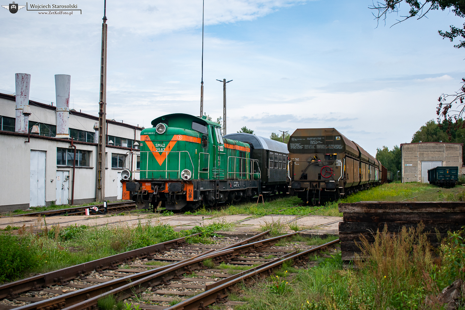 22.08.2024 | Pyskowice | Bocznica PROTOR'u w Dzierżnie | SM42-2587 z trzema 94A i Ty42-24 na haku stoi w dawnej stacji Dzierżno.