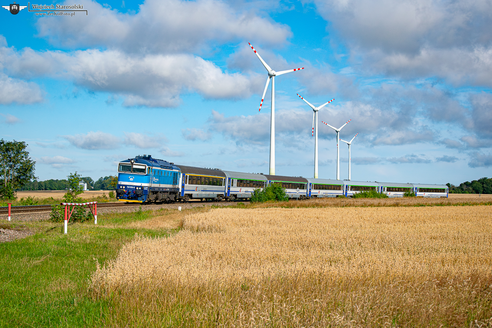 30.07.2024 | Swarzewo | Szlak Puck-Władysławowo | 754 026-9 z pociągiem spółki PKP Intercity, jedzie w kierunku Pucka.