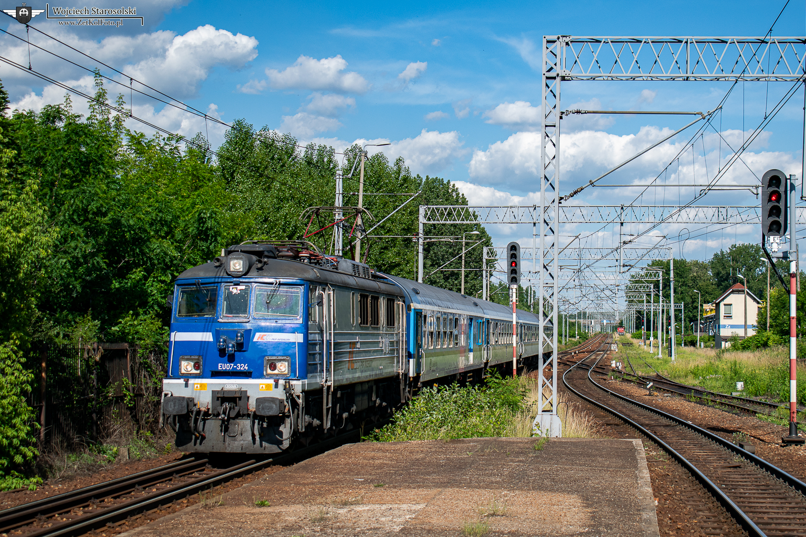22.06.2022 | Zabrze | Stacja Zabrze | EU07-324 z pociągiem spółki PKP Intercity jedzie wjeżdża w perony w/w stacji.
