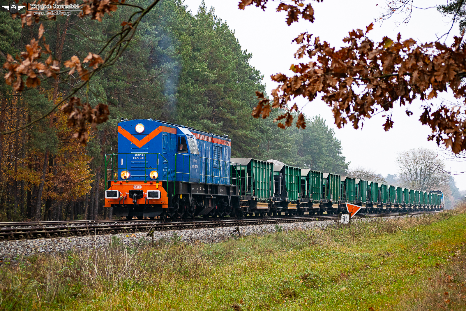 11.11.2024 | Stare Drzewce | Szlak podg.Głogówko-Wschowa | SM31-158 z szutrówkami i 6Dh-1 007 na haku pracuje jako pociąg roboczy na w/w szlaku.